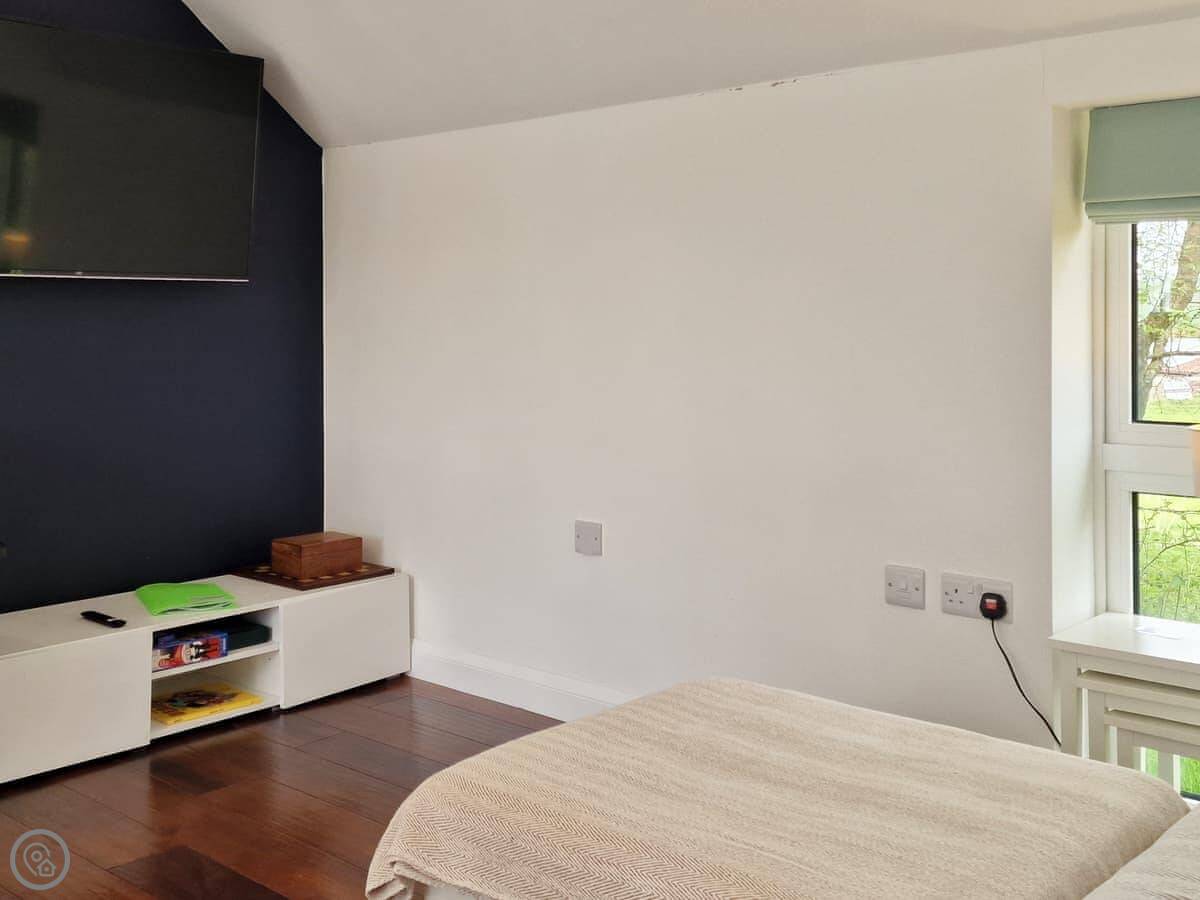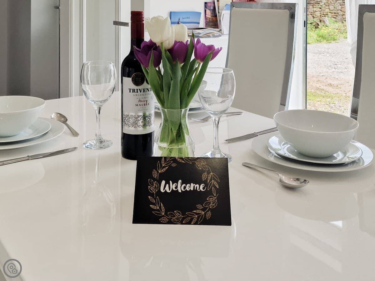 Set all on one level and with underfloor heating throughout, you enter into the hallway where to your right you will find the large bedroom that has a super kingsize bed that can be twins on request, there is also a pull-out bed available allowing for flexible accommodation to suit your needs. The stylish shower room has a large walk-in shower and heated towel rail. The bright and airy open plan lounge, kitchen and diner have fantastic floor-to-ceiling windows that span the width of the room and flood it with natural light. The kitchen is extremely well equipped with everything you will need during your stay, while the dining area is perfect for a meal at any time of day or an evening of playing games. Cosy up on the sofa in the living area and catch up on your favourite box set or movie on the large Smart TV. Outside, you have a lovely patio area with a table and chairs that enjoy gorgeous views of the Mendip Hills right over to the Bristol Channel. There is also a small lawned area to the rear of the gite.