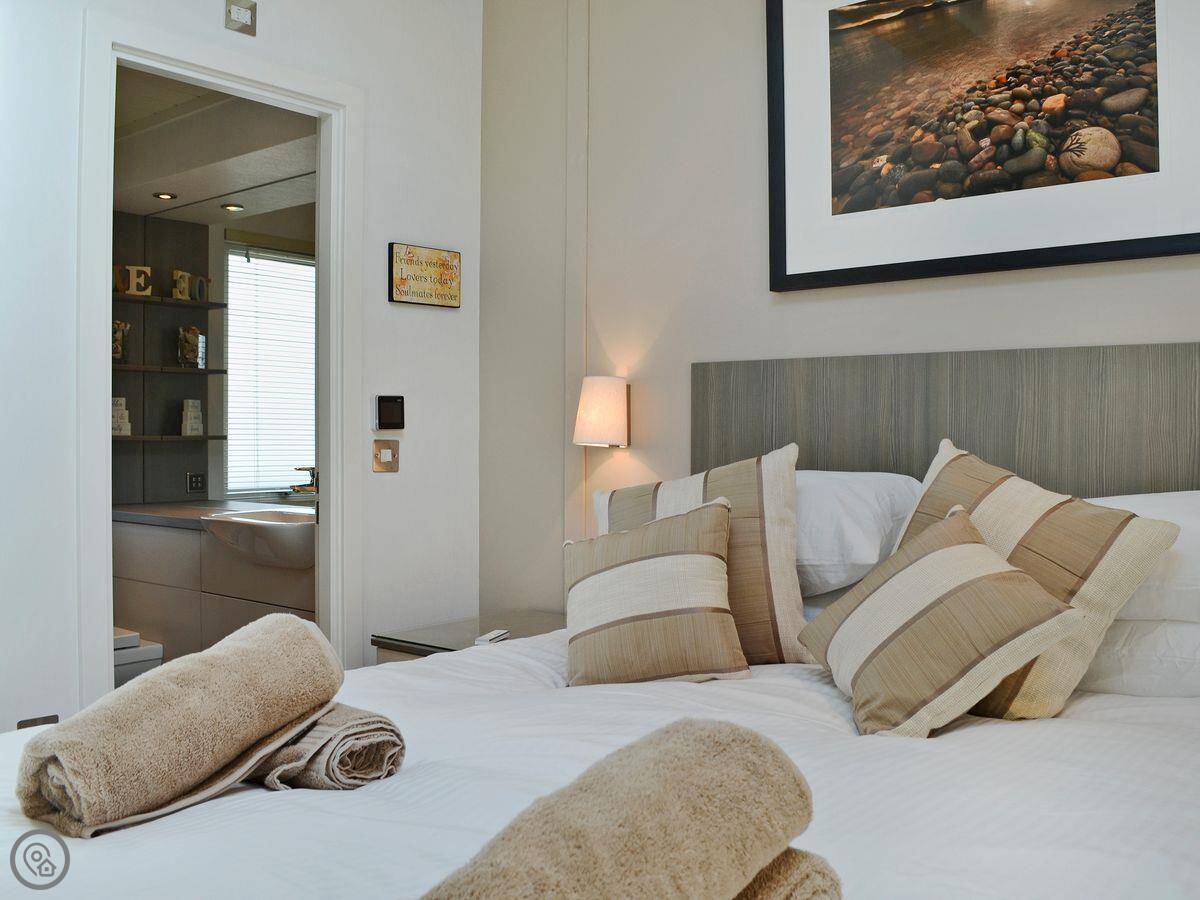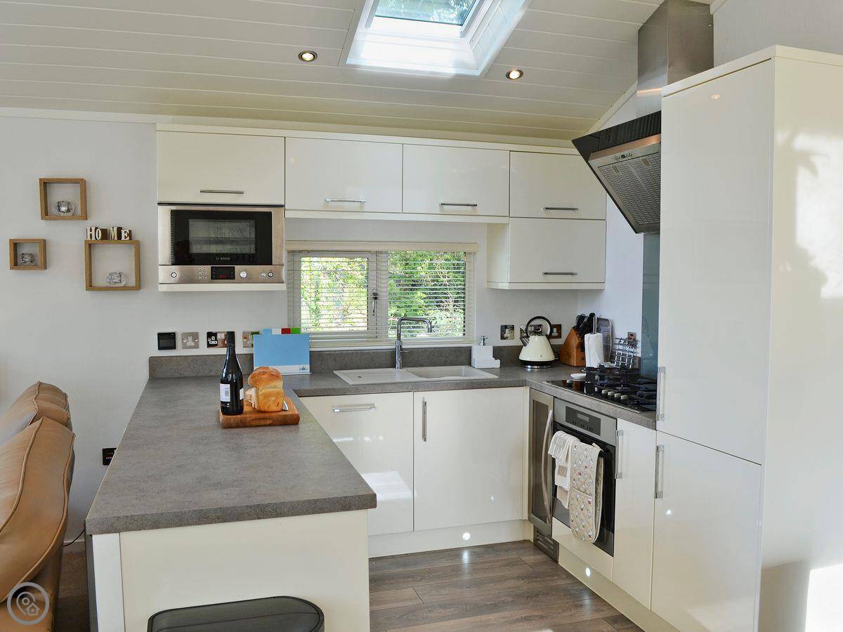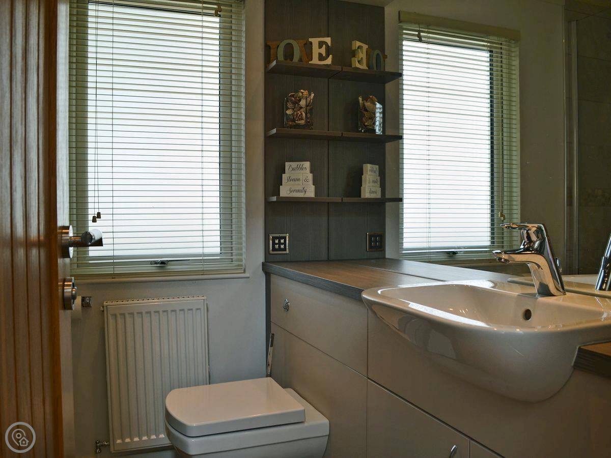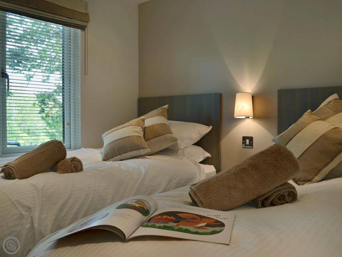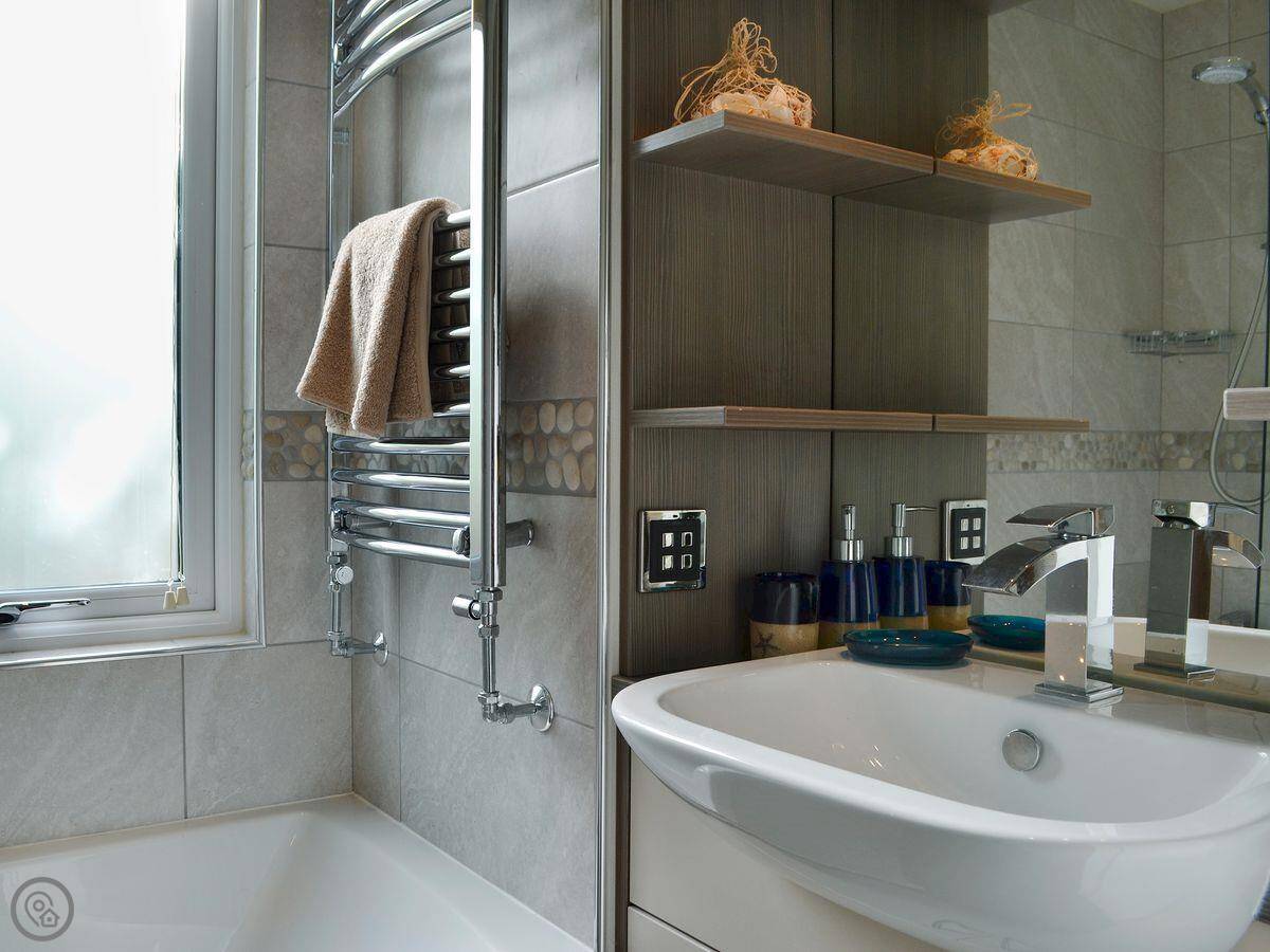 It sleeps six, in three bedrooms. There are two bathrooms which is handy with that many people. It has a 5 Star rating. It's clean and well-equipped, more modern than a traditional cottage.