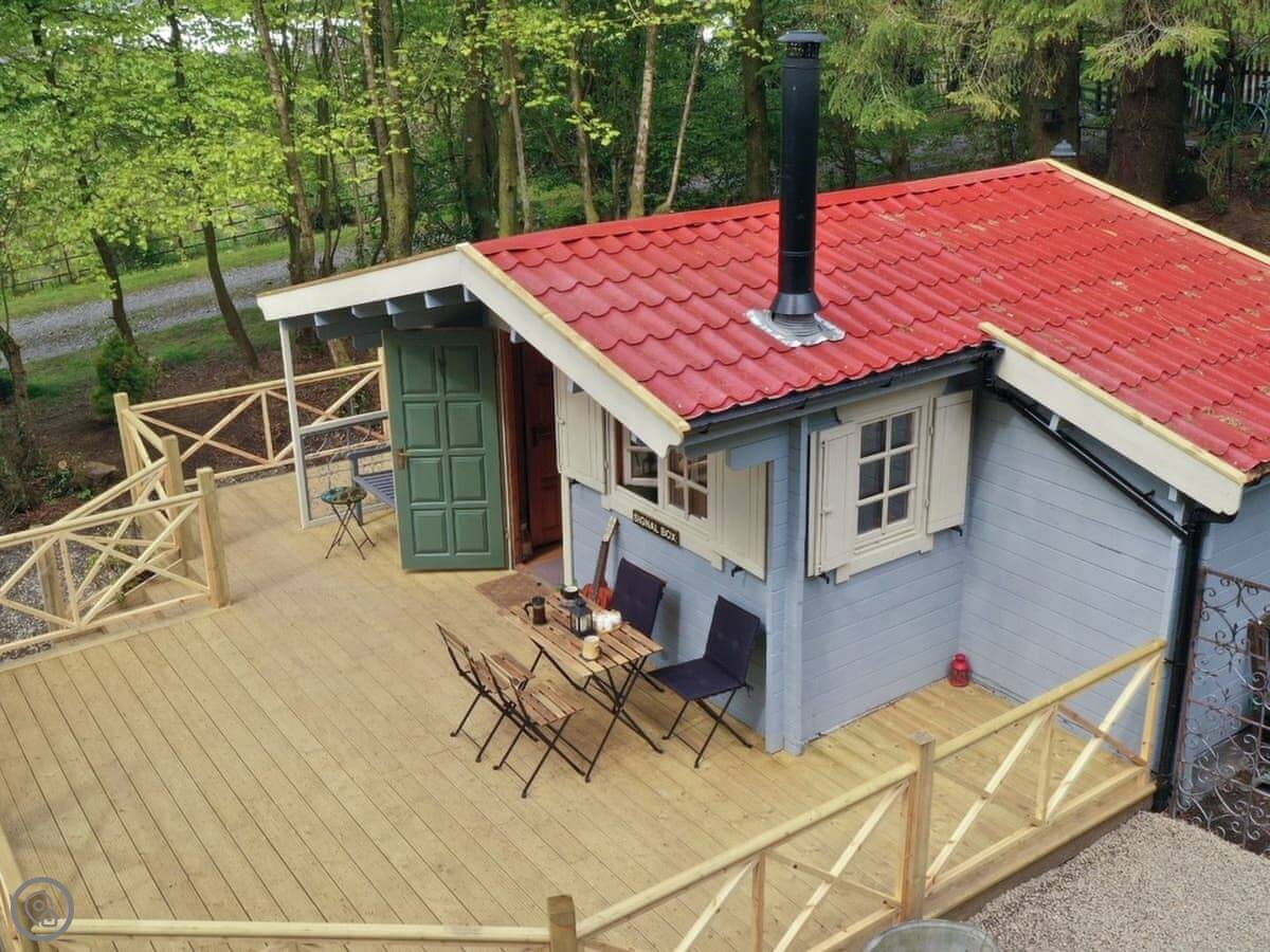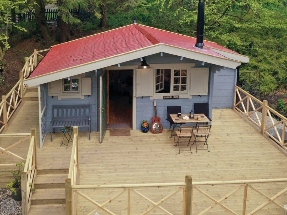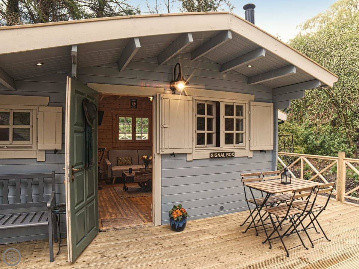 The Signal Box is a log cabin. It sits on its own up a track, past the main farmhouse. The views are over fields.