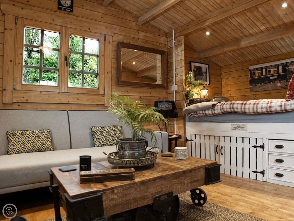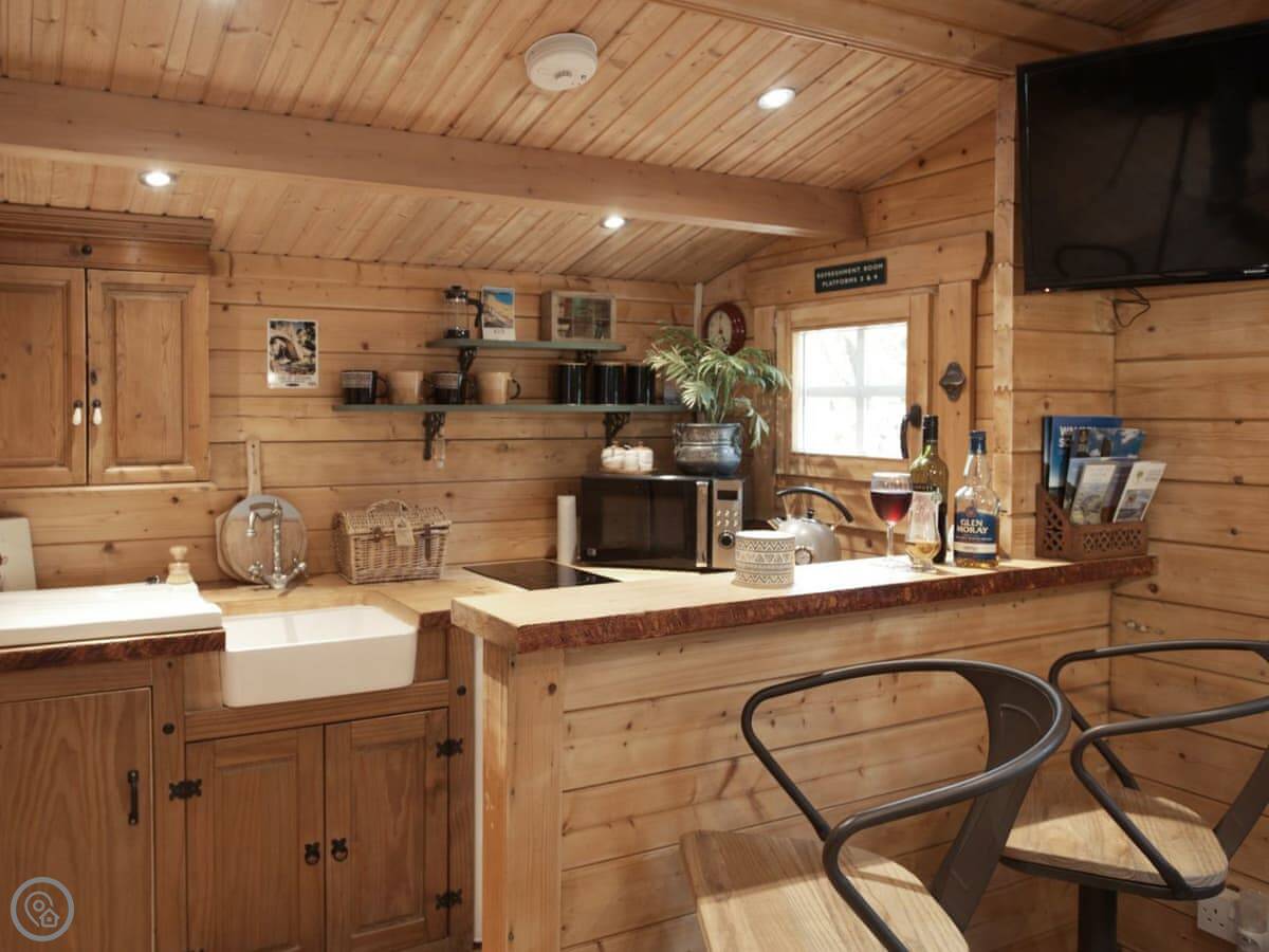 The cabin has all the basics. There's a TV, wifi, parking right outside, and a small patio with a table. It's fully double-glazed, so it's warm. One well-behaved dog is welcome.