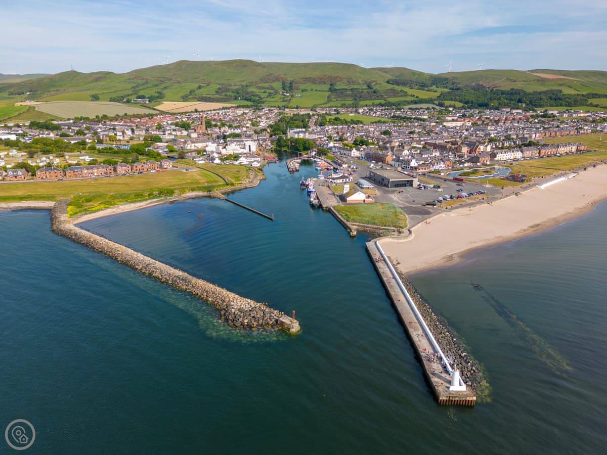 The nearest town is Girvan, a ten minute drive. There's a big Co-op, other shops, and a decent leisure centre with a pool. From the harbour there, you can get boat trips out to Ailsa Craig.
