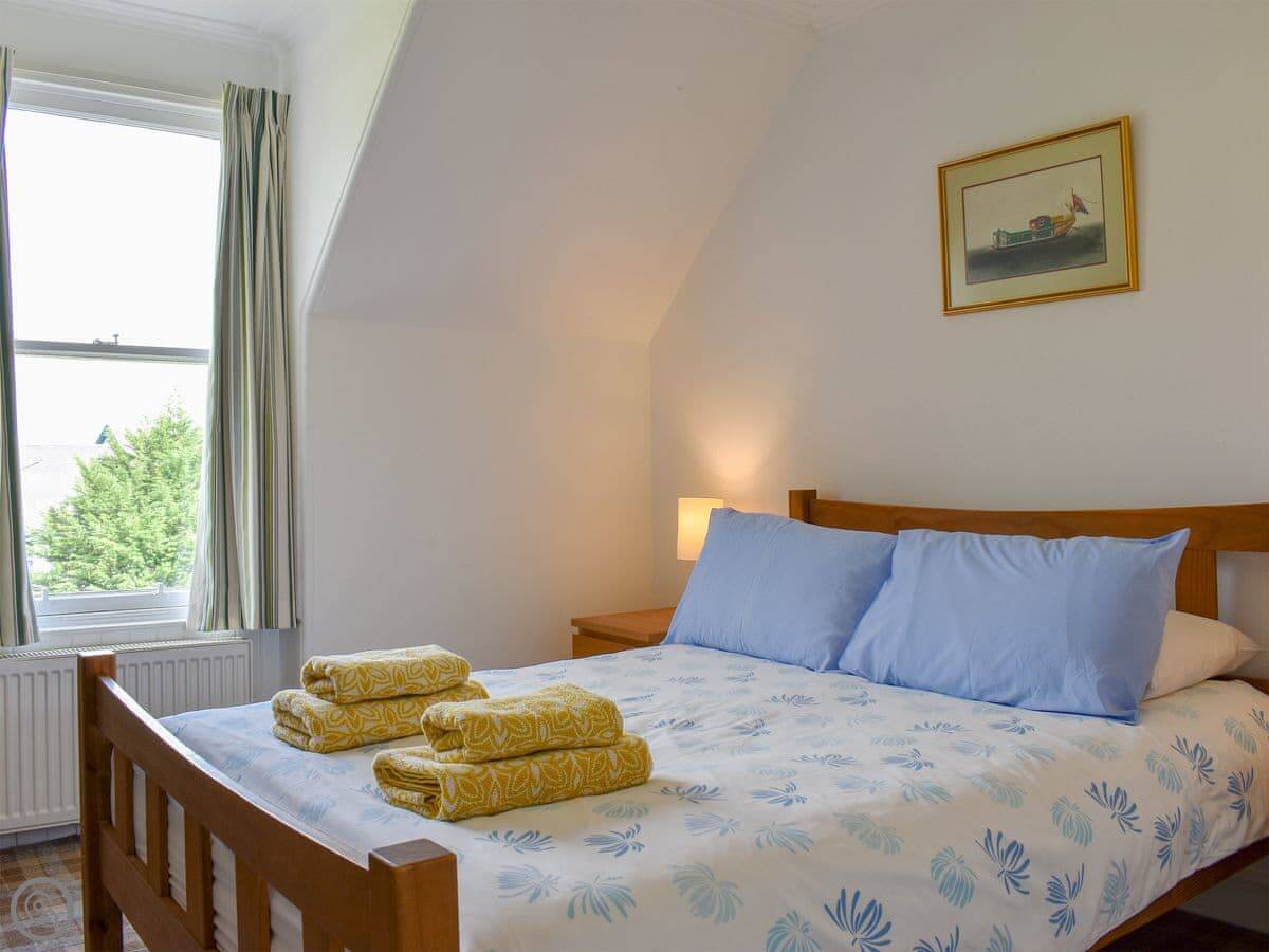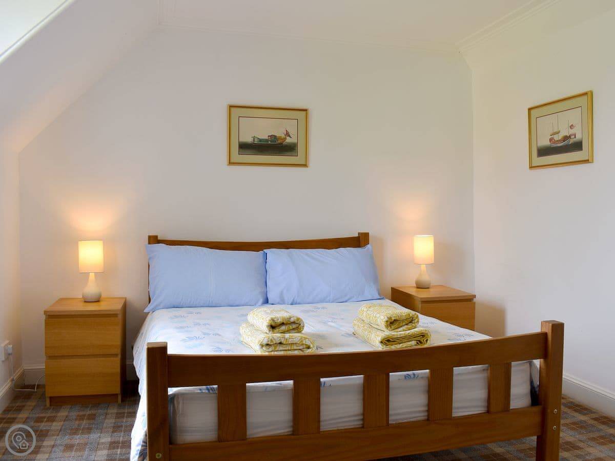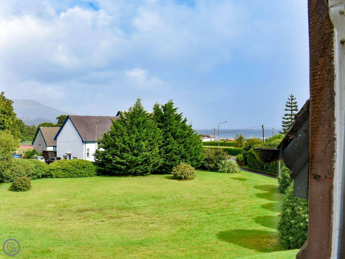 It sleeps four, in two bedrooms. There are two bathrooms, which is handy. It's got a 3 Star rating. It's comfortable and clean, not luxury. The garden is a good size. You get a clear view over Brodick Bay towards Goatfell from there.