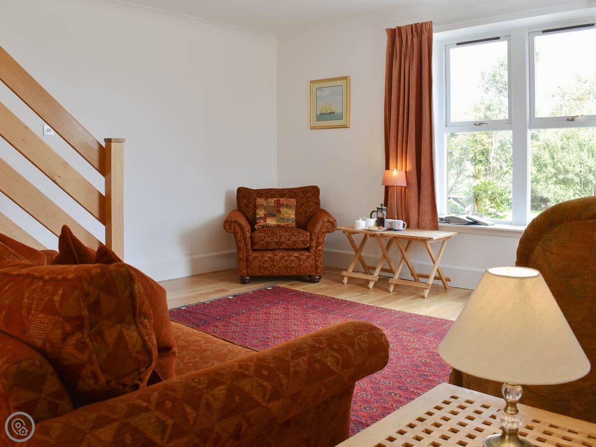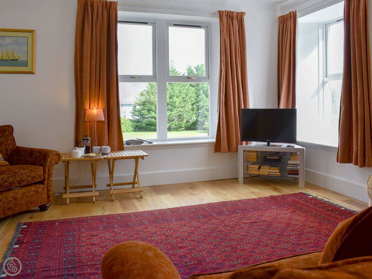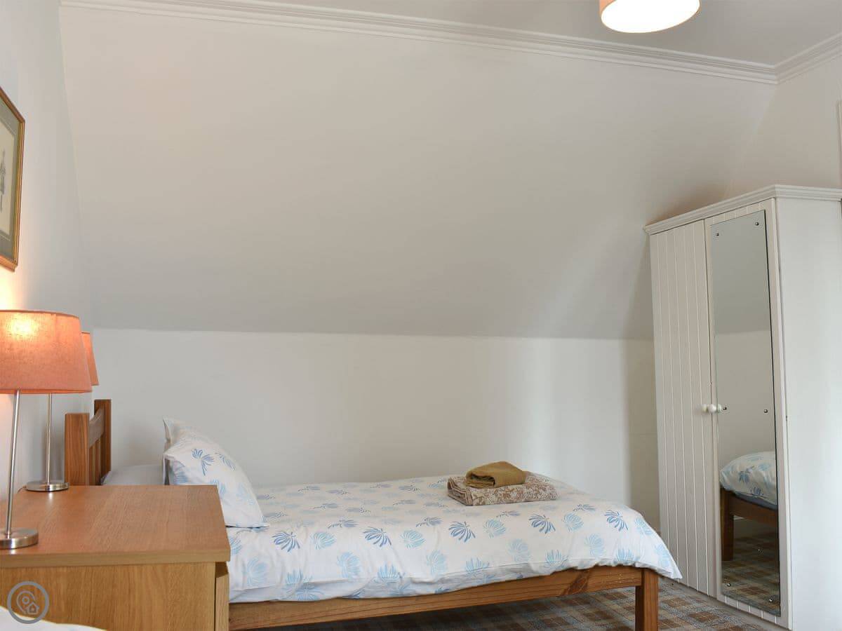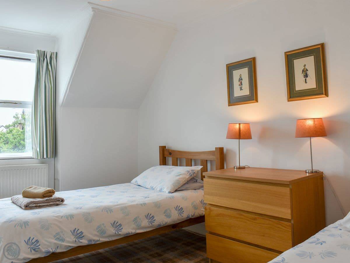 It sleeps four, in two bedrooms. There are two bathrooms, which is handy. It's got a 3 Star rating. It's comfortable and clean, not luxury. The garden is a good size. You get a clear view over Brodick Bay towards Goatfell from there.