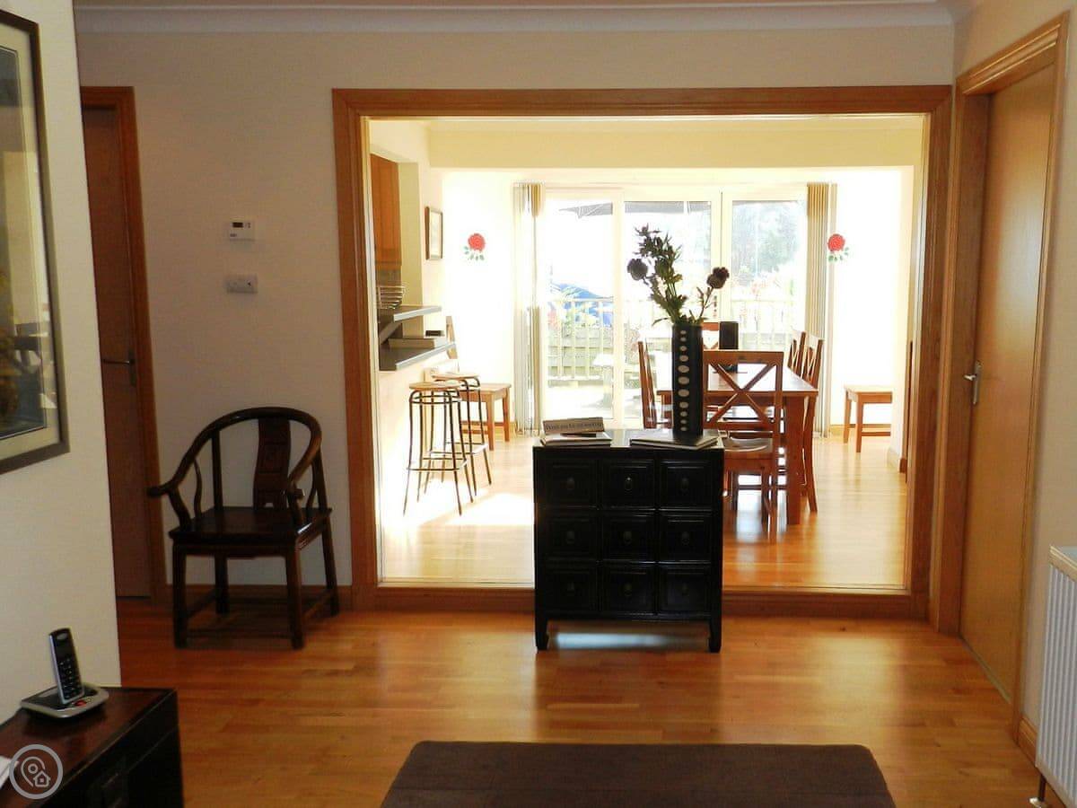 Cloy Lodge is a house in Brodick on Arran. It's detached. You're within two minutes of the Auchrannie Resort on foot. They've got swimming pools, a spa, and places to eat if you need them.