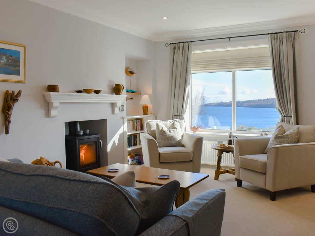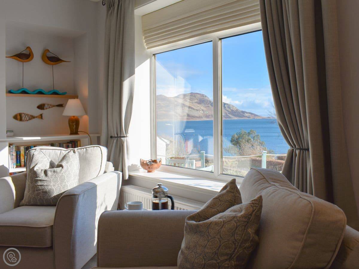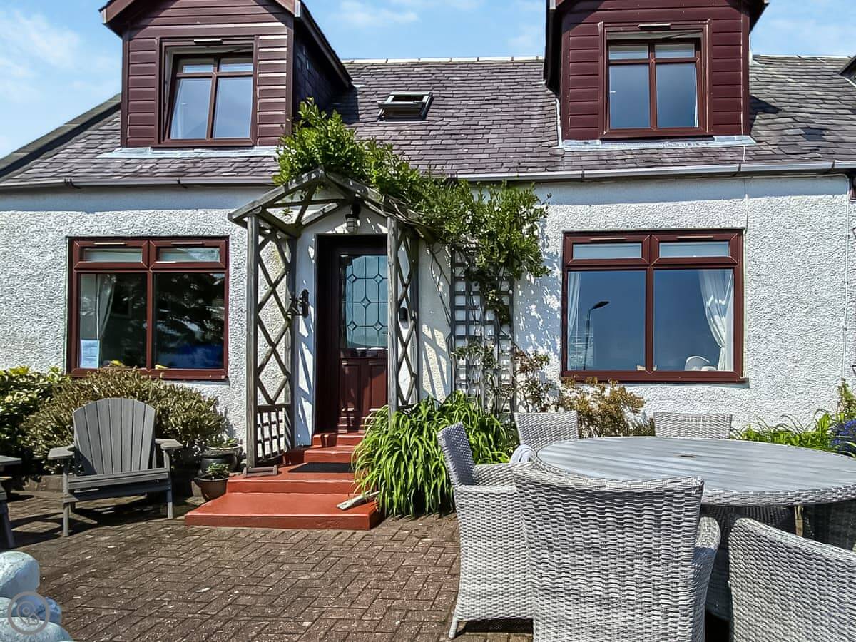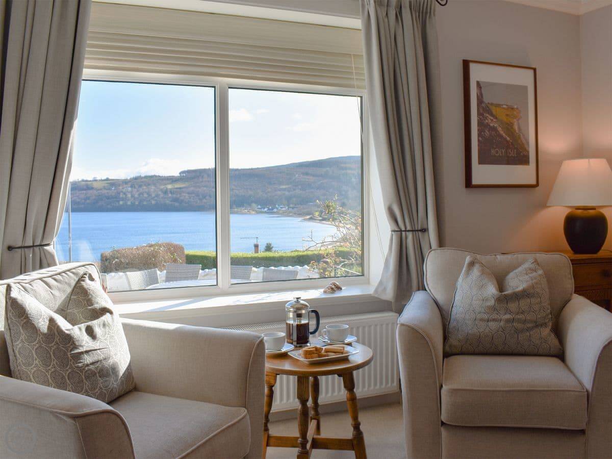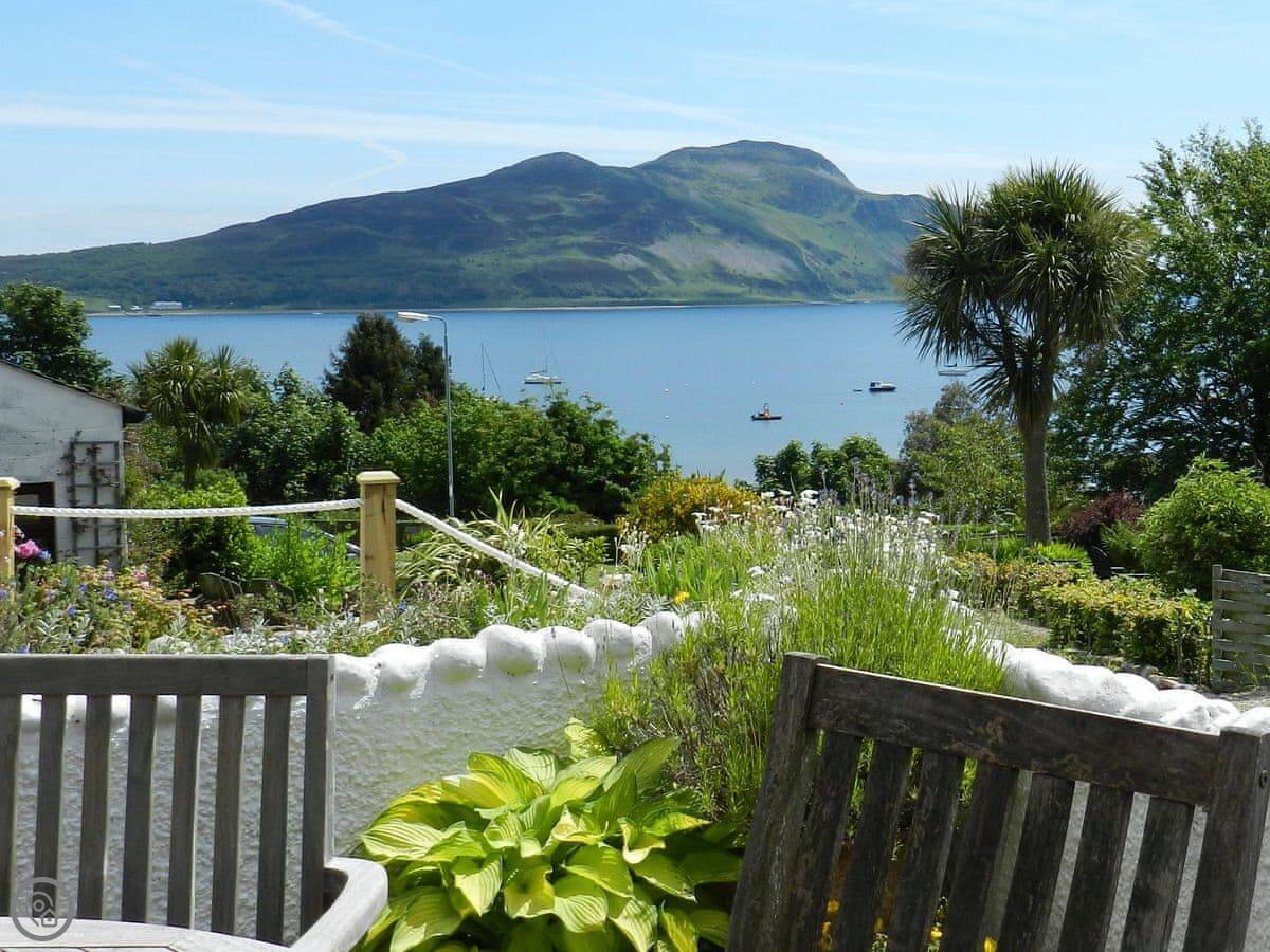 This is Braehead Cottage in Lamlash. It's on a quiet cul-de-sac right in the middle of the village, but at the top end so you're up a bit of a slope. You get a decent view from the front. You can see right across Lamlash Bay to Holy Isle from the living room and the two main bedrooms.