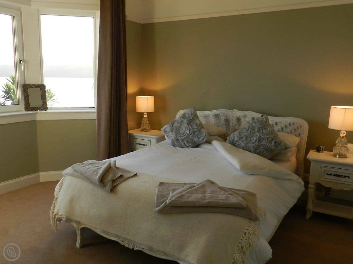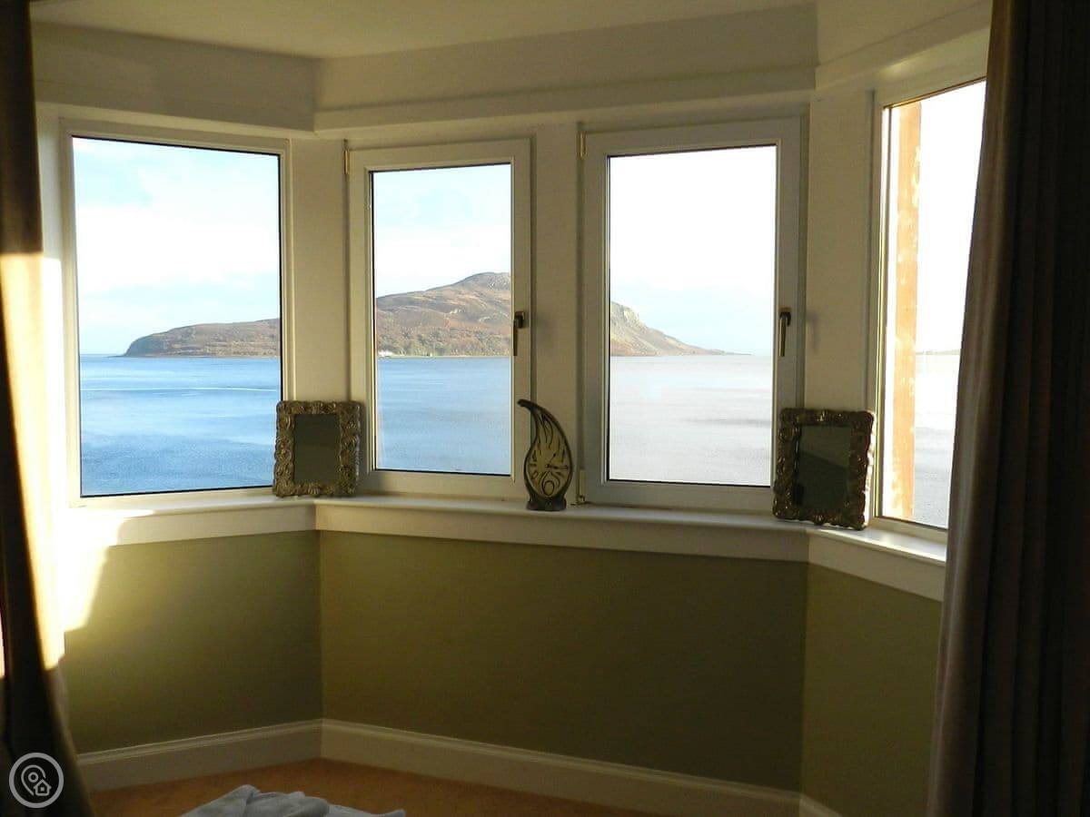 Two of the double bedrooms look right out at Holy Isle. You wake up to that view.