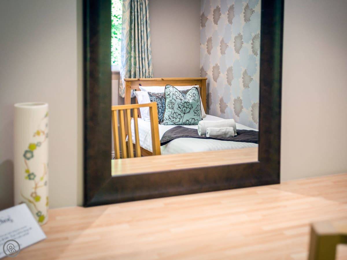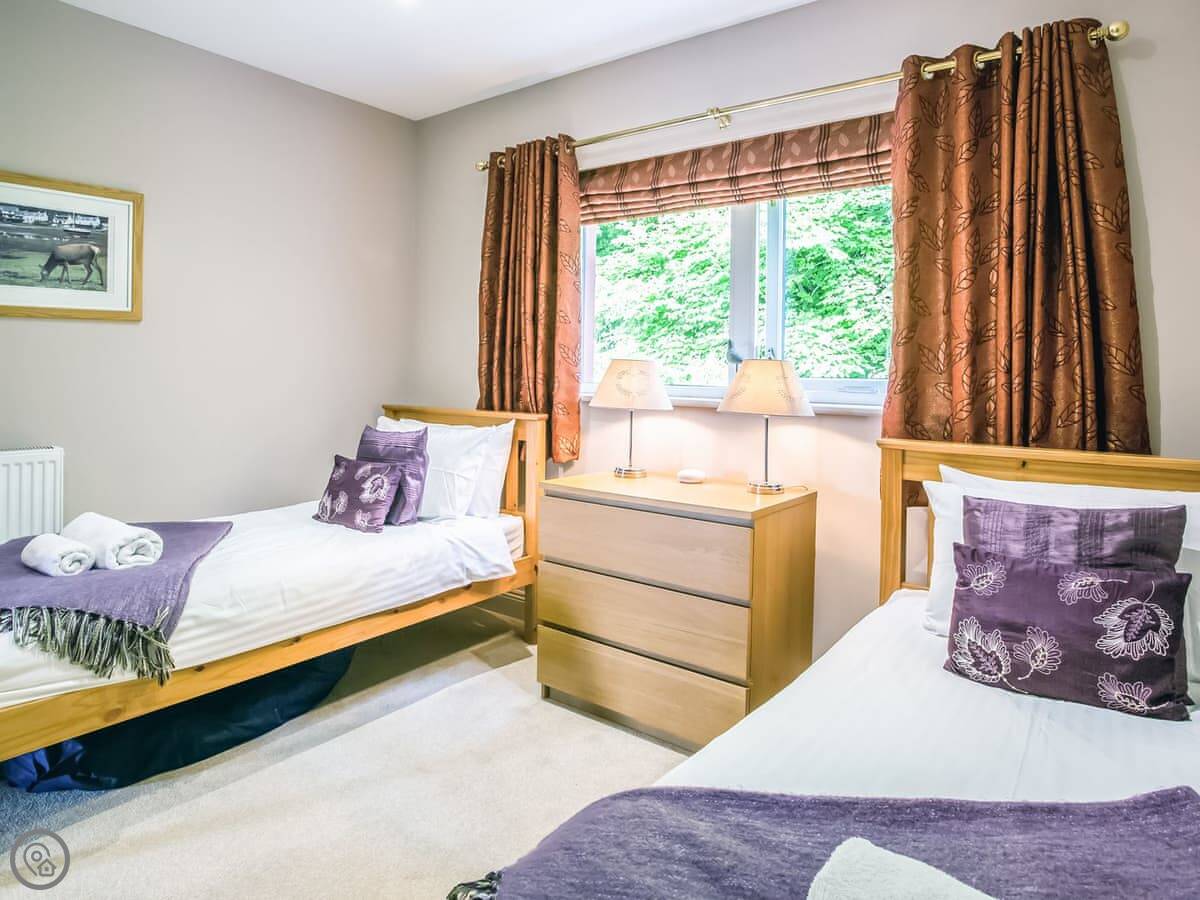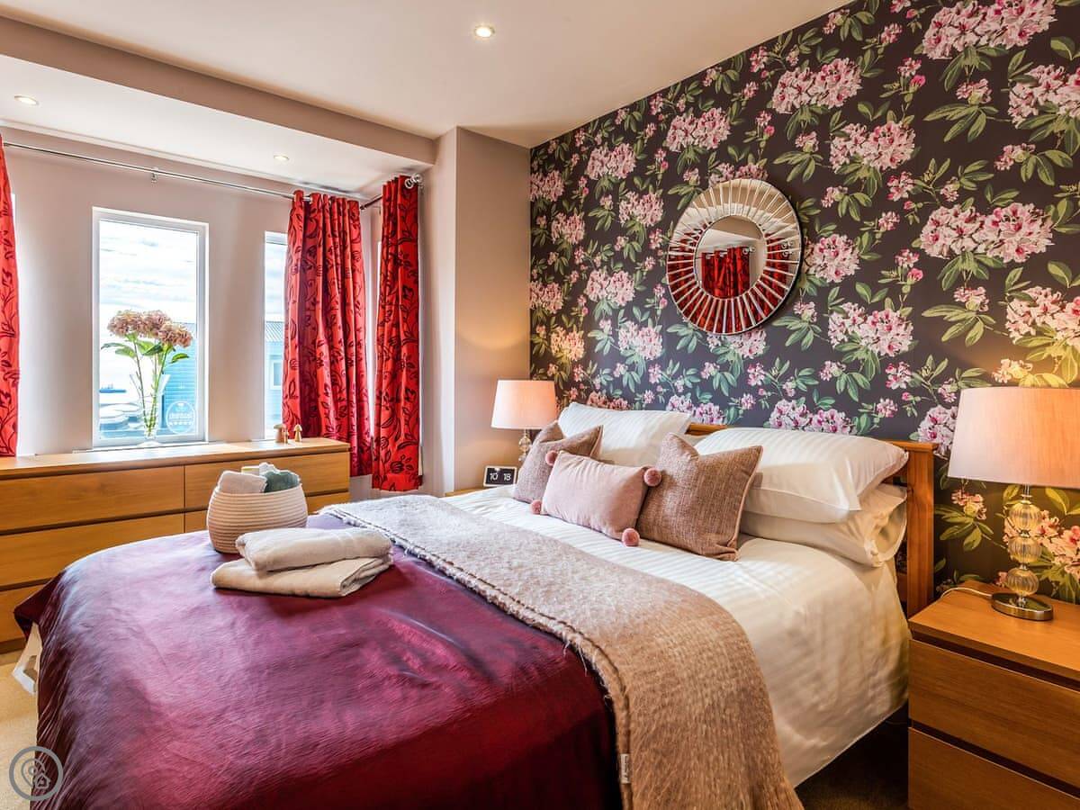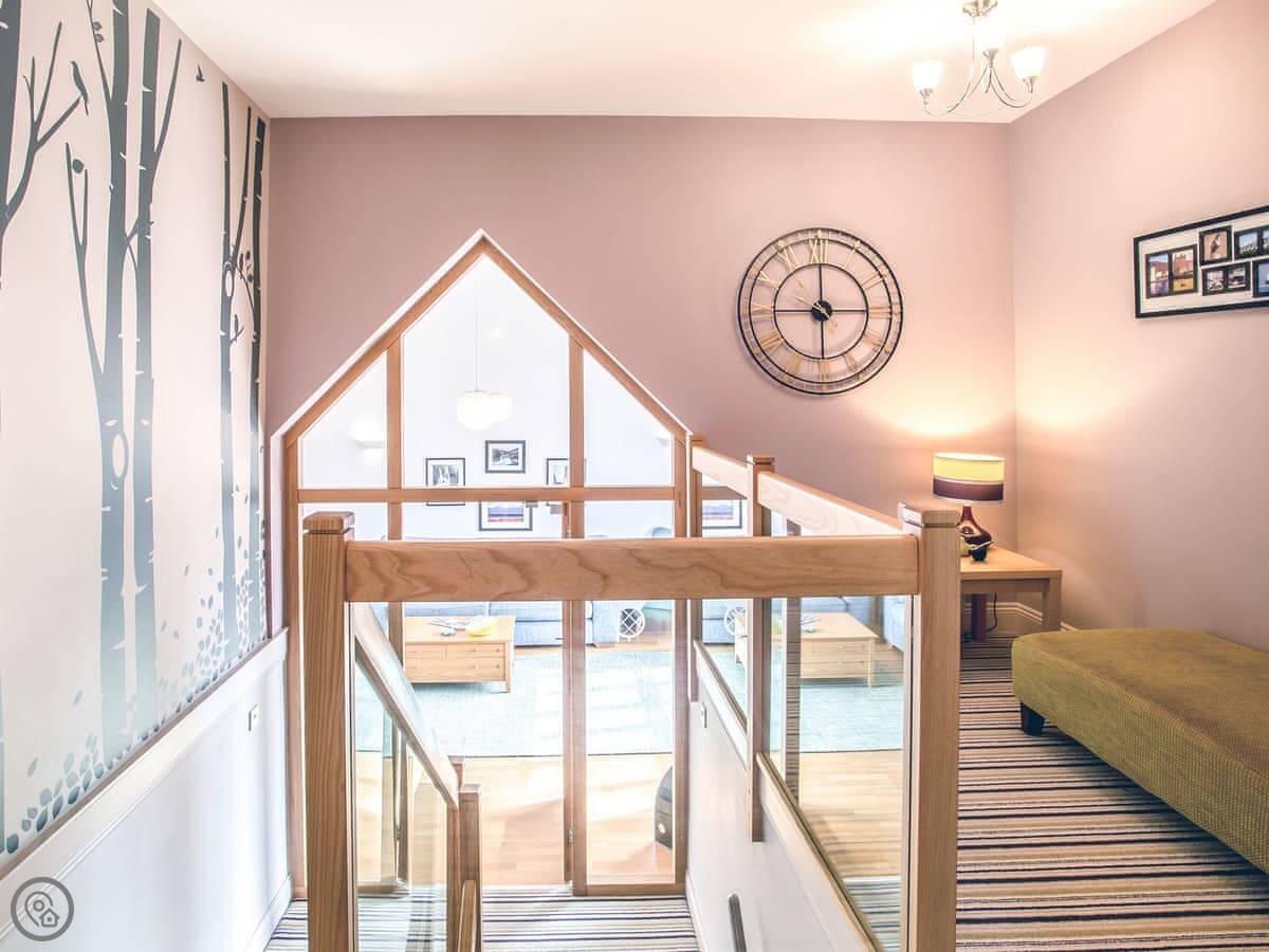 It's got a 5 Star rating. That means it's well looked after and has everything you'd need. The views are the main thing. From the living room balcony and the main bedroom, you look straight out over the pier and Lamlash Bay. You can see Holy Isle. The downstairs bedroom has the same view. You get the morning sun.