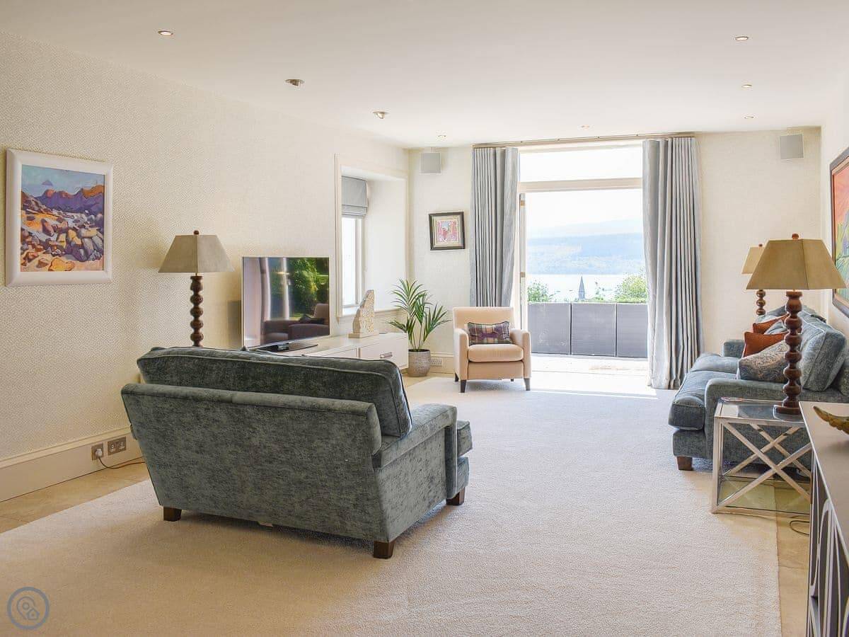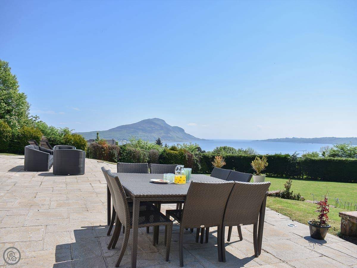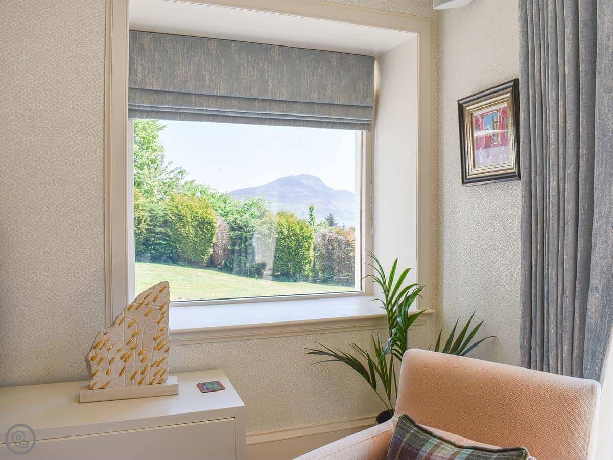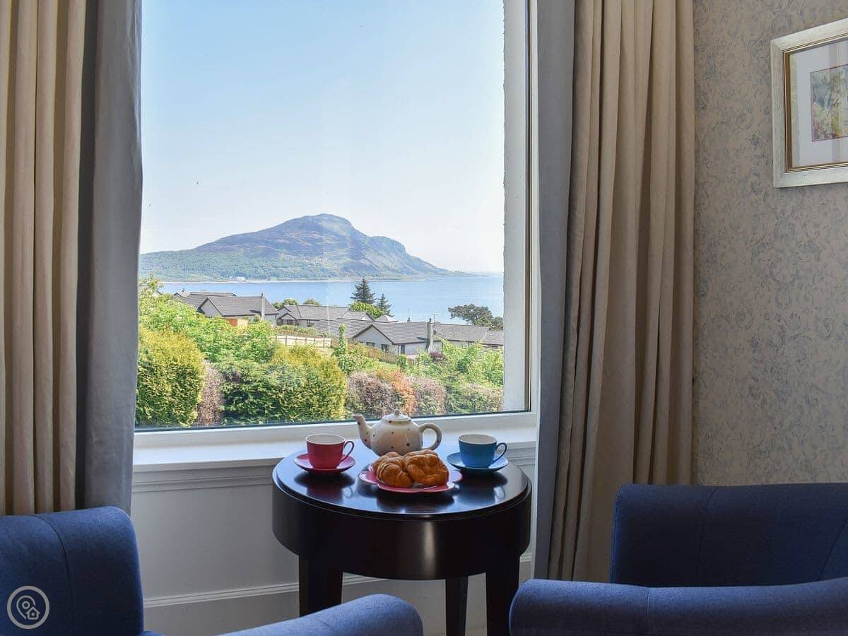 Kilbride House is in Lamlash on the Isle of Arran. It's a detached house right on the edge of the village, so the views are the main thing. You look straight out over the bay to Holy Isle.