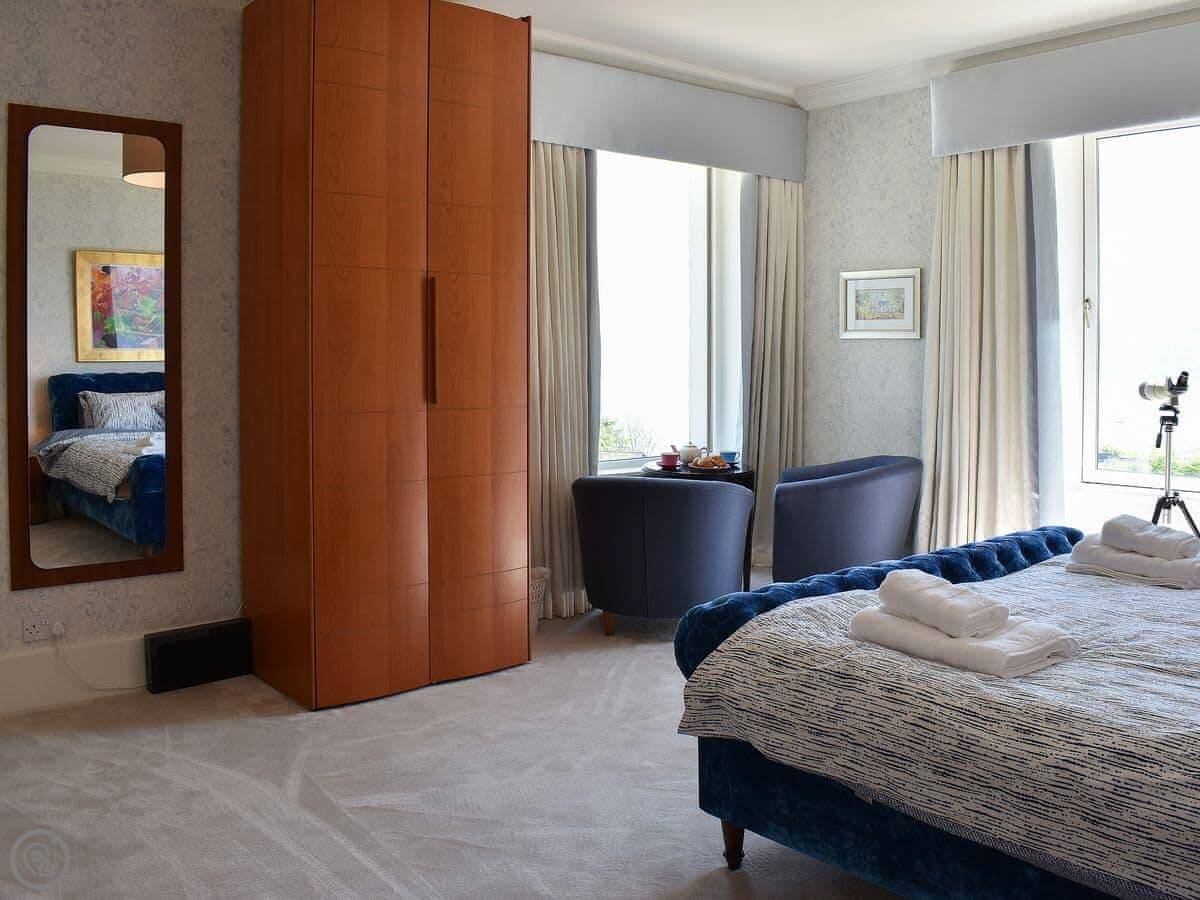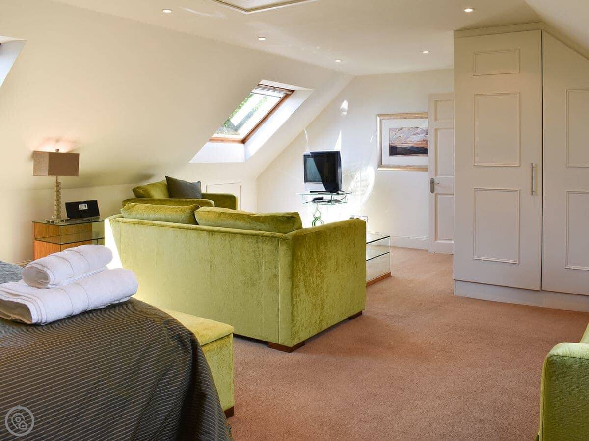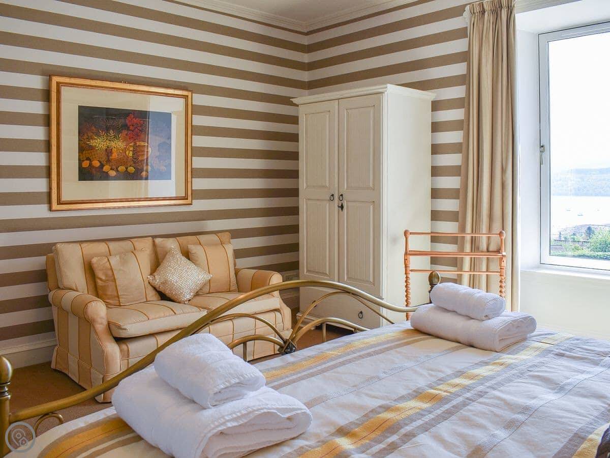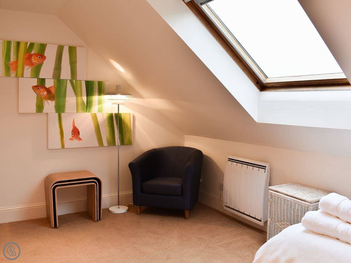 All six bedrooms are spread over two upper floors. The top floor has two bedrooms and a separate seating area, which is useful if a couple of people want some quiet time. The main bedroom on the first floor has a little seating area by the window. The view from there in the morning is very good.