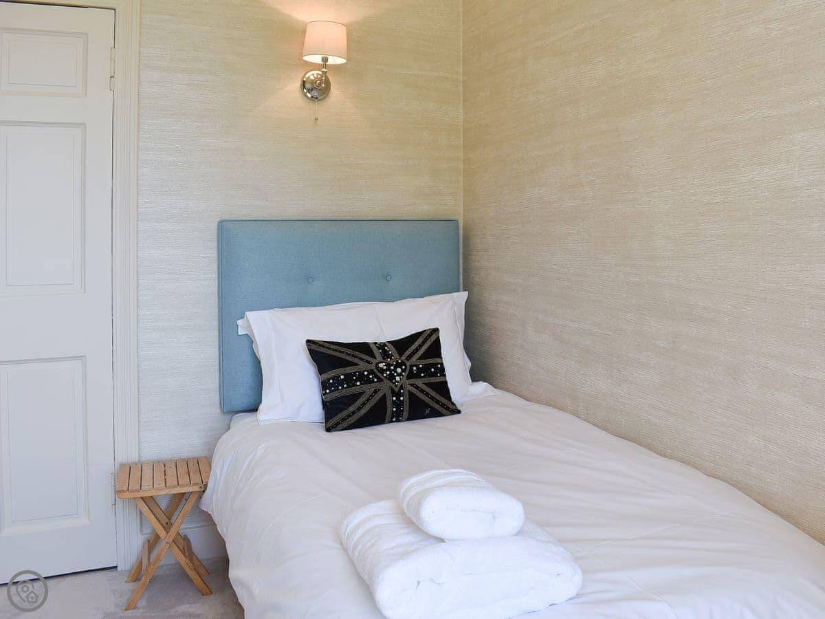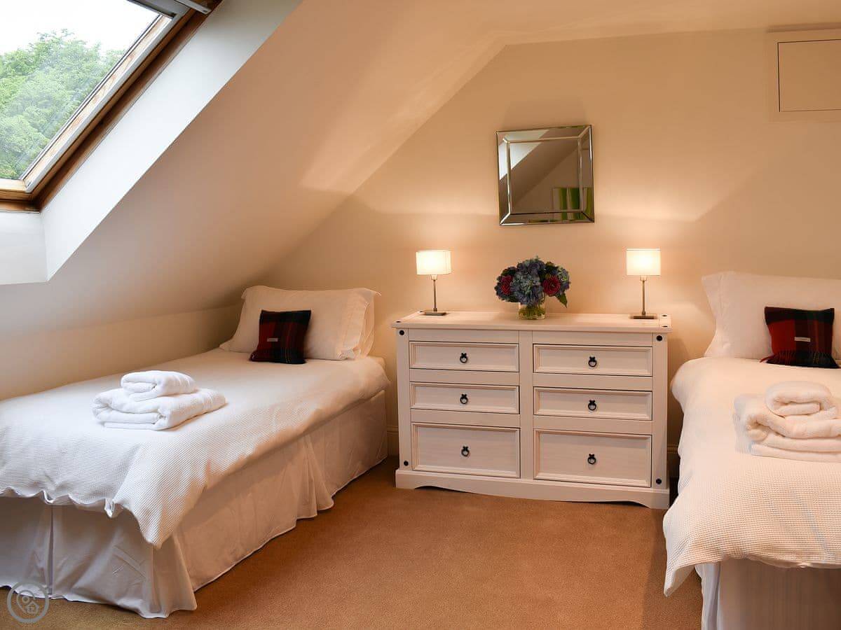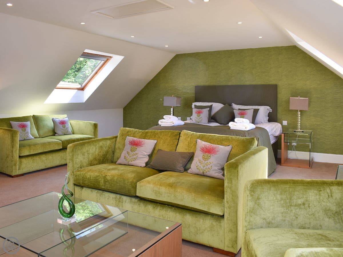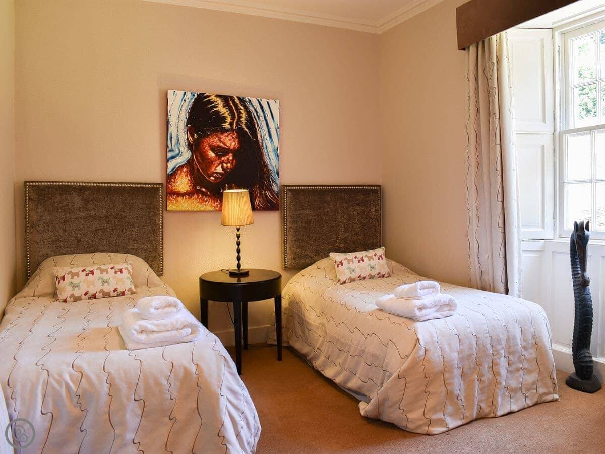 All six bedrooms are spread over two upper floors. The top floor has two bedrooms and a separate seating area, which is useful if a couple of people want some quiet time. The main bedroom on the first floor has a little seating area by the window. The view from there in the morning is very good.