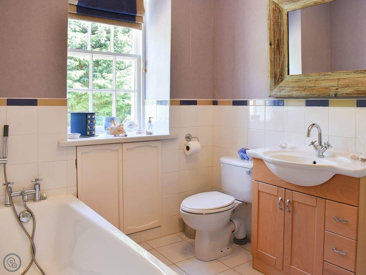 You can walk into Lamlash in about ten minutes. There's a shops, a couple of places to eat, and a pub. The beach and the jetty are there too. There are tennis courts and a golf club. The beach is shingle.