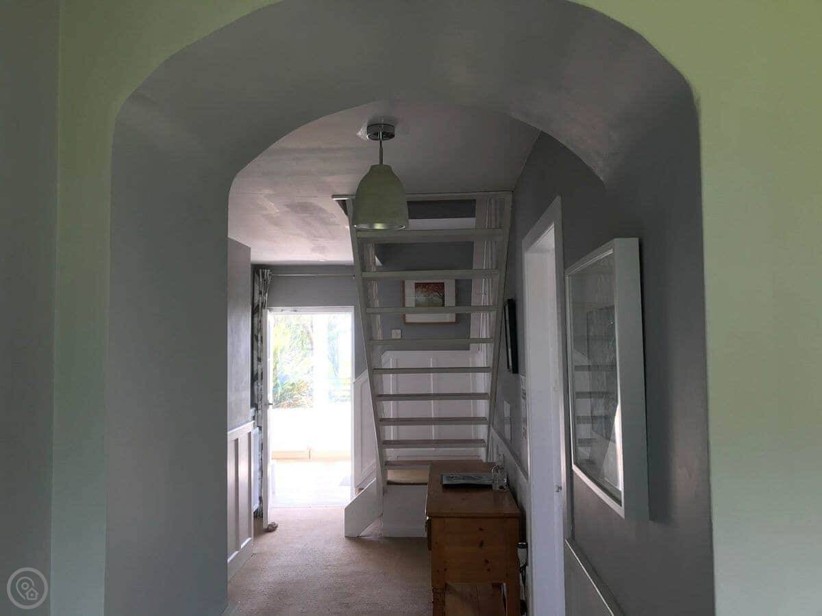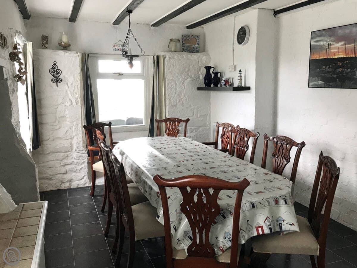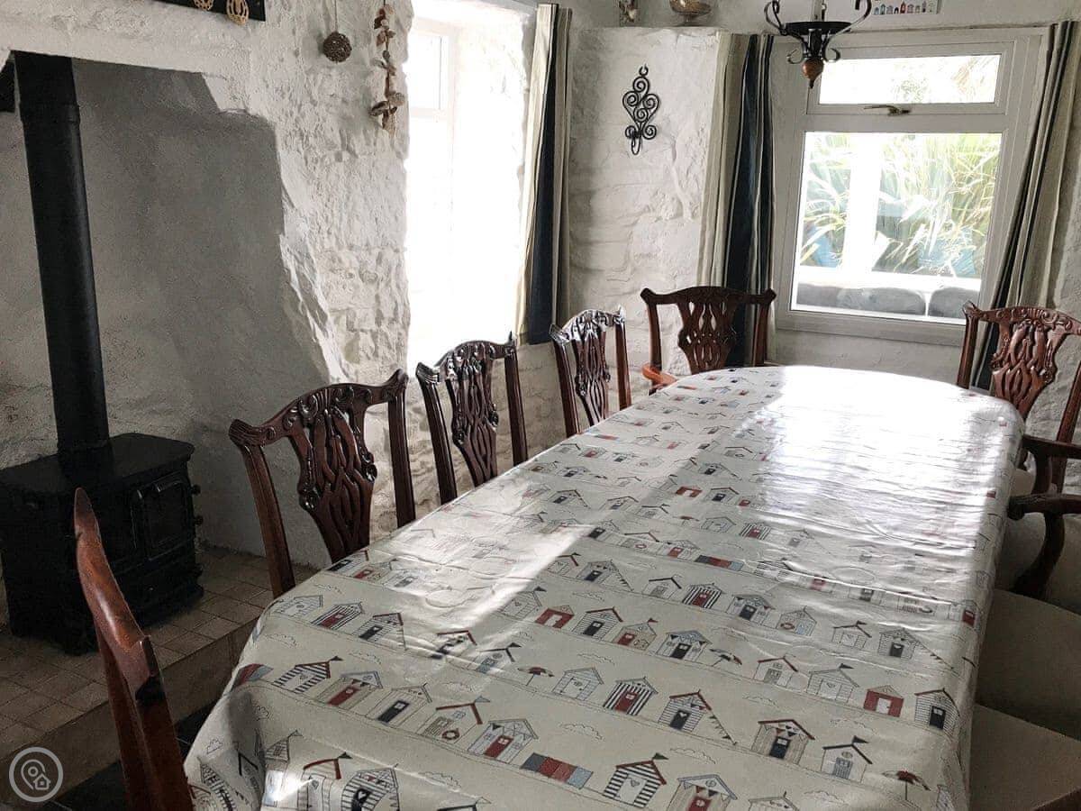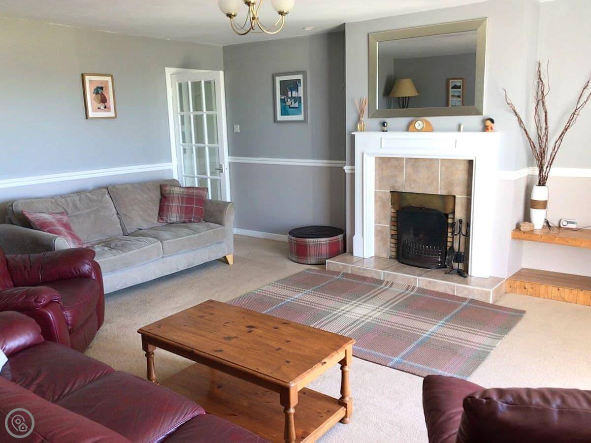 Inside, it's spacious. There's an open fire in the living room and a wood burner in the dining room. There's gas central heating too, so you won't be cold. It's got a sunroom as well.