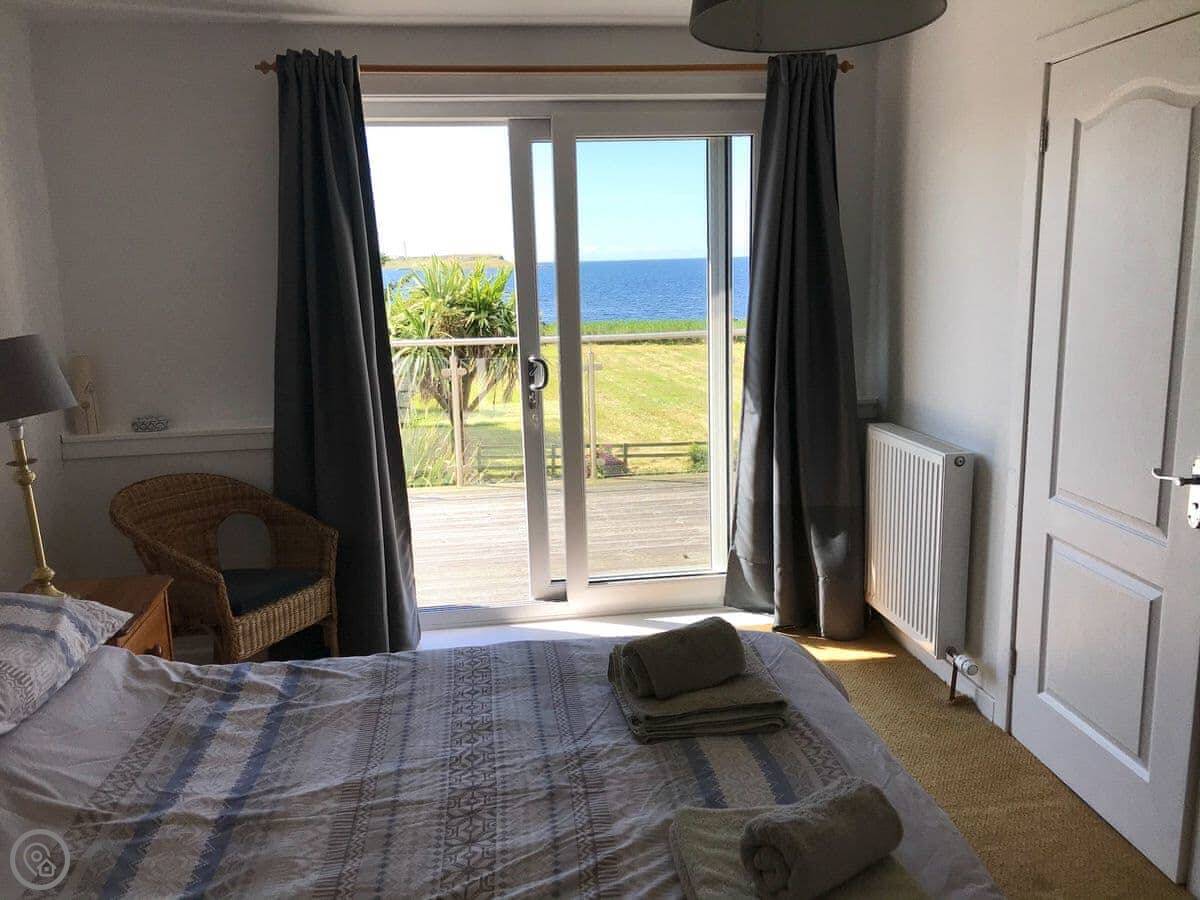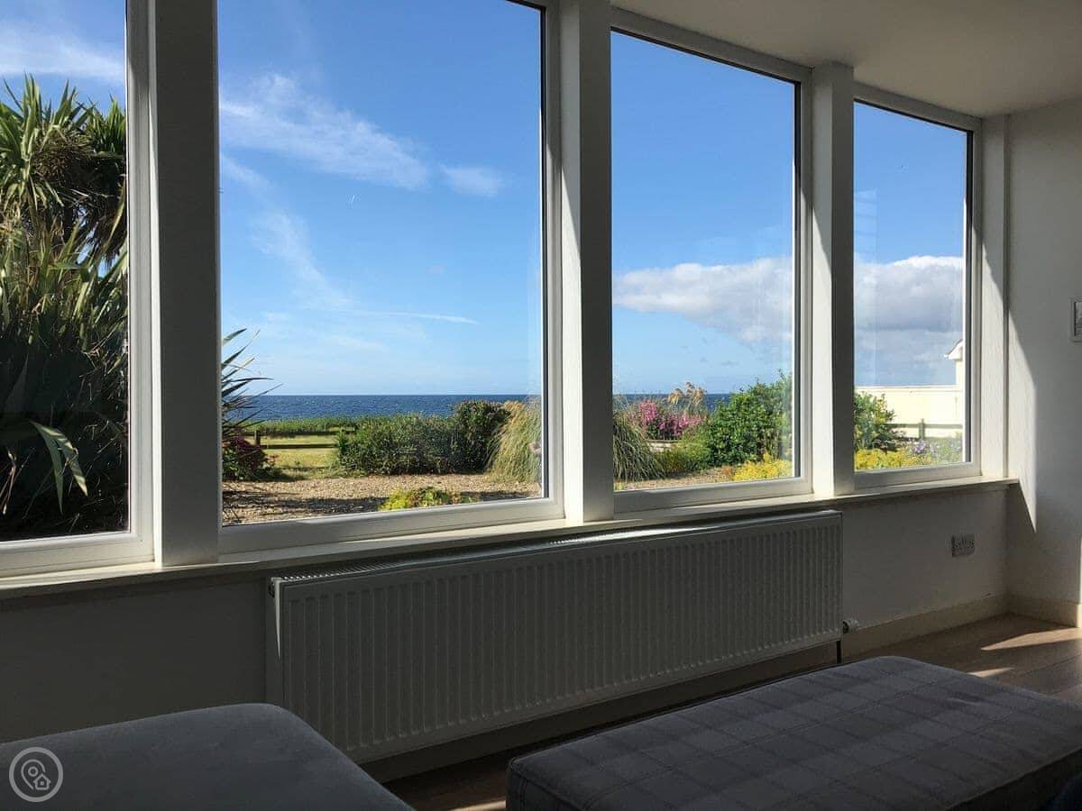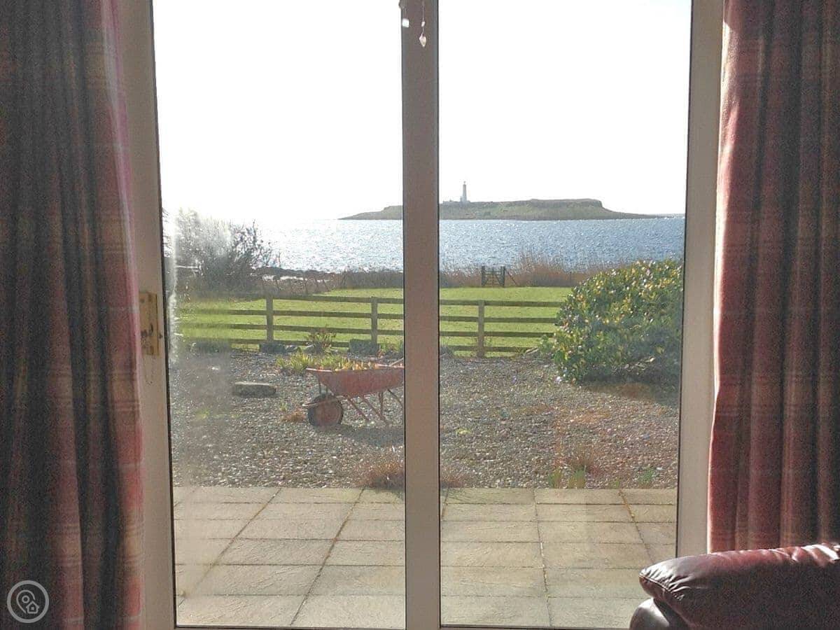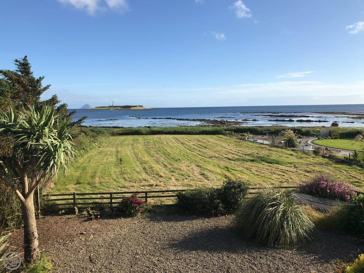 The main thing is the view. Every main room looks straight out to sea, over the Firth of Clyde. You can see Pladda and Ailsa Craig from the windows. You can lie in bed and look at it. There are patio doors from the living room and one of the bedrooms.