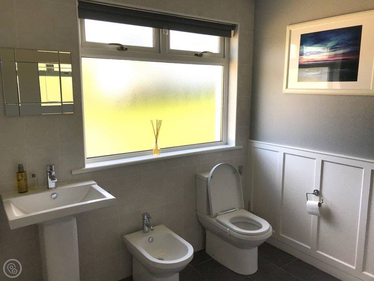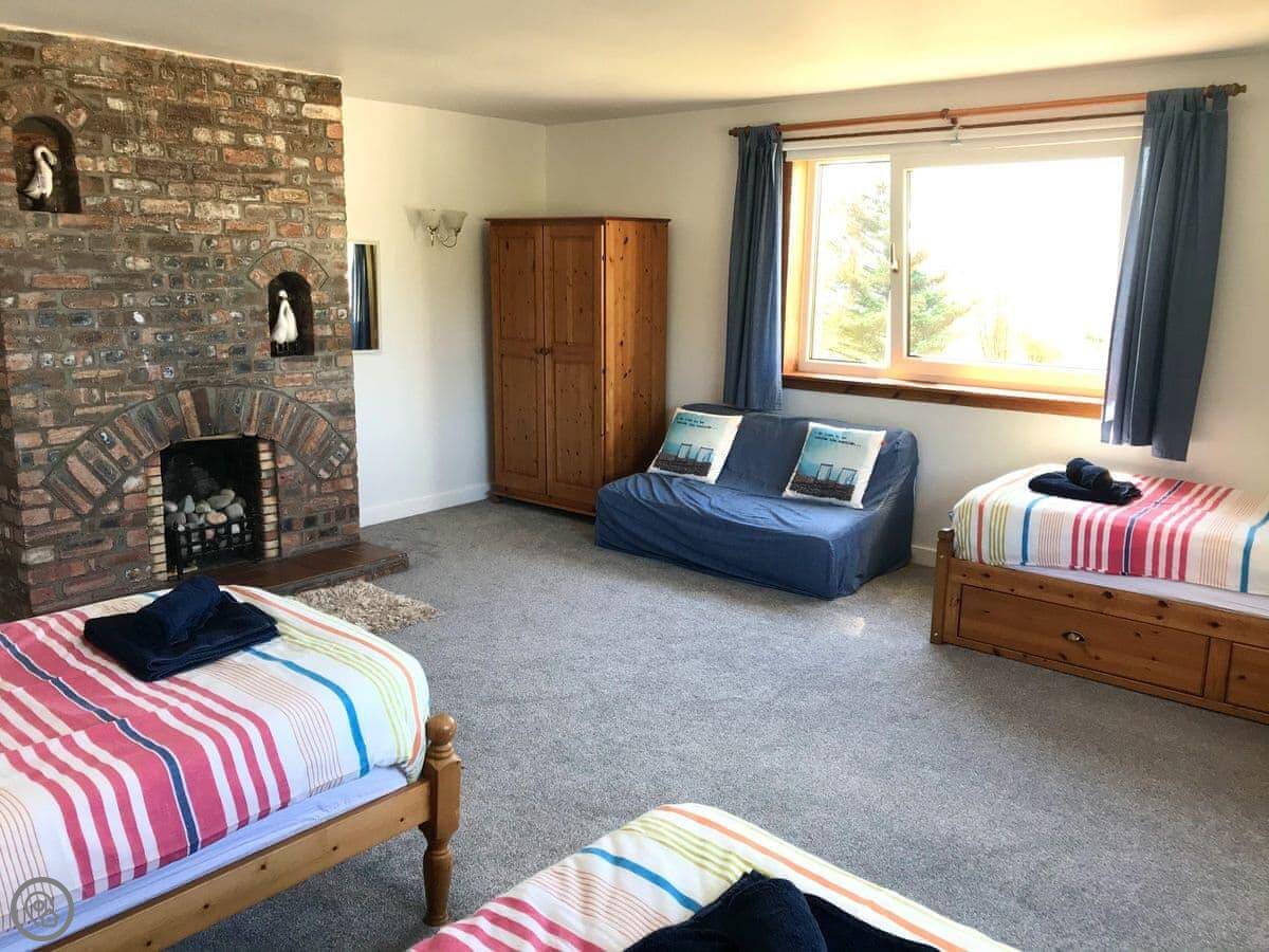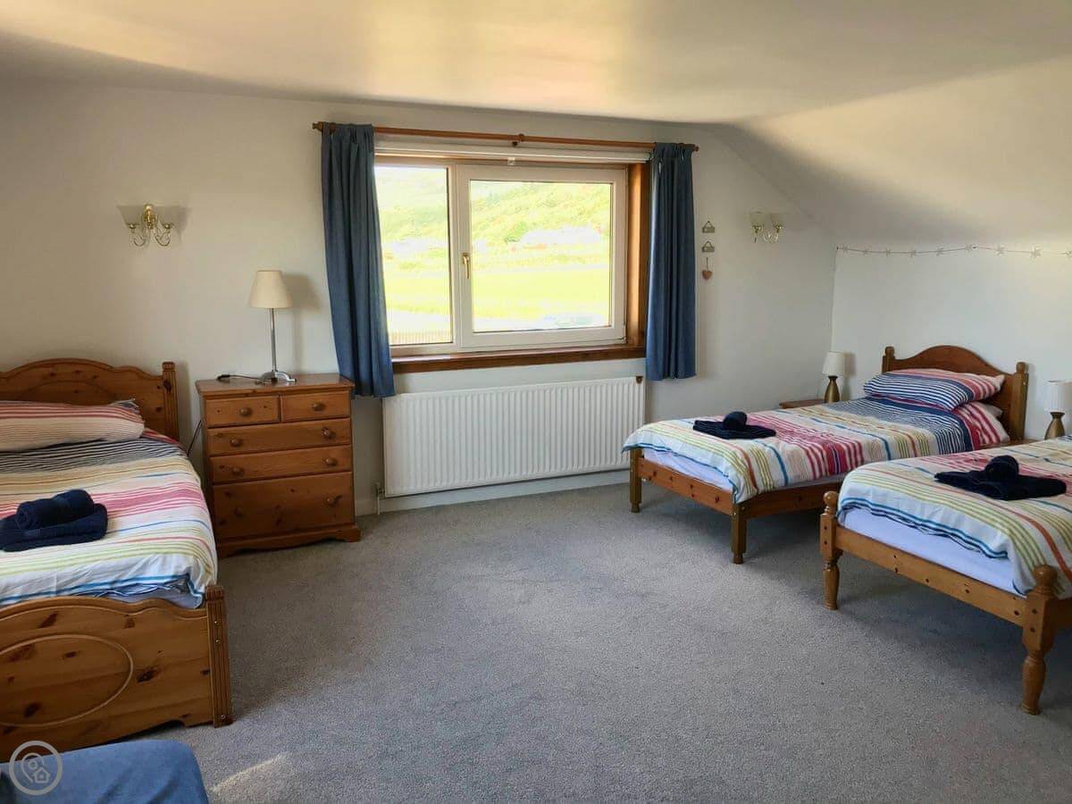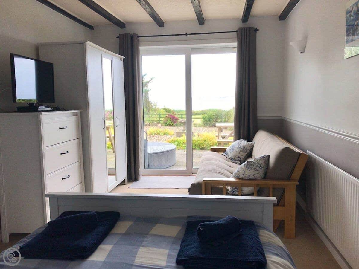 The main thing is the view. Every main room looks straight out to sea, over the Firth of Clyde. You can see Pladda and Ailsa Craig from the windows. You can lie in bed and look at it. There are patio doors from the living room and one of the bedrooms.