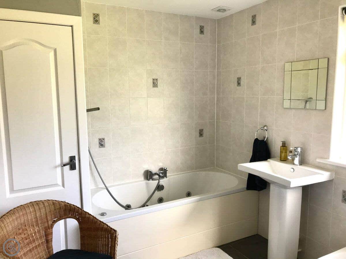 It sleeps nine. Four bedrooms and three bathrooms, which helps with a big group. It's got a 3 Star rating, so it's clean and comfortable but not a show home. It's a family place.