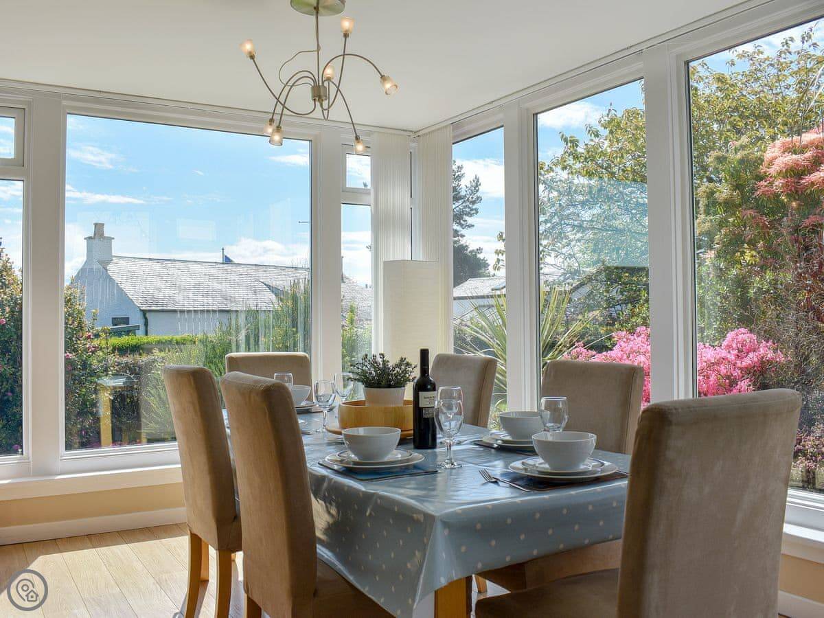 Tigh-na-Mara is a detached villa located in Lamlash with beautiful views of Holy Isle. The property is spacious and bright and set within an enclosed mature garden giving guests privacy and plenty of space to relax and enjoy the views, yet close enough to all local amenities. The kitchen is well-equipped and offers everything you need for a self-catering holiday. Guests can dine together in the conservatory/dining room whilst taking in the views of Holy Isle. The living room has comfortable sofas for relaxing in and large windows which bring in plenty of natural light and beautiful views, making this room ideal for unwinding after a days activities and sightseeing. Bedroom 2 also enjoys views of Holy Isle and the twin room upstairs is the perfect spot for the kids to enjoy watching DVDs and having some space to themselves, especially after experiencing some of Arran’s many outdoors activities. To the front of the garden is a raised decking area allows guests to sit and look out to Holy Isle and relax. For those that enjoy being close to all amenities but like to stay in a private quiet position, Tigh-na-Mara gives you the best of both worlds, making this a great place for your Arran holiday.