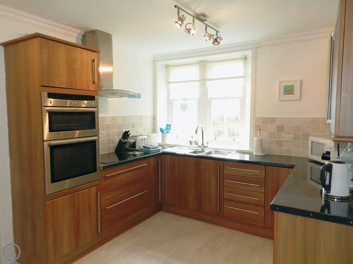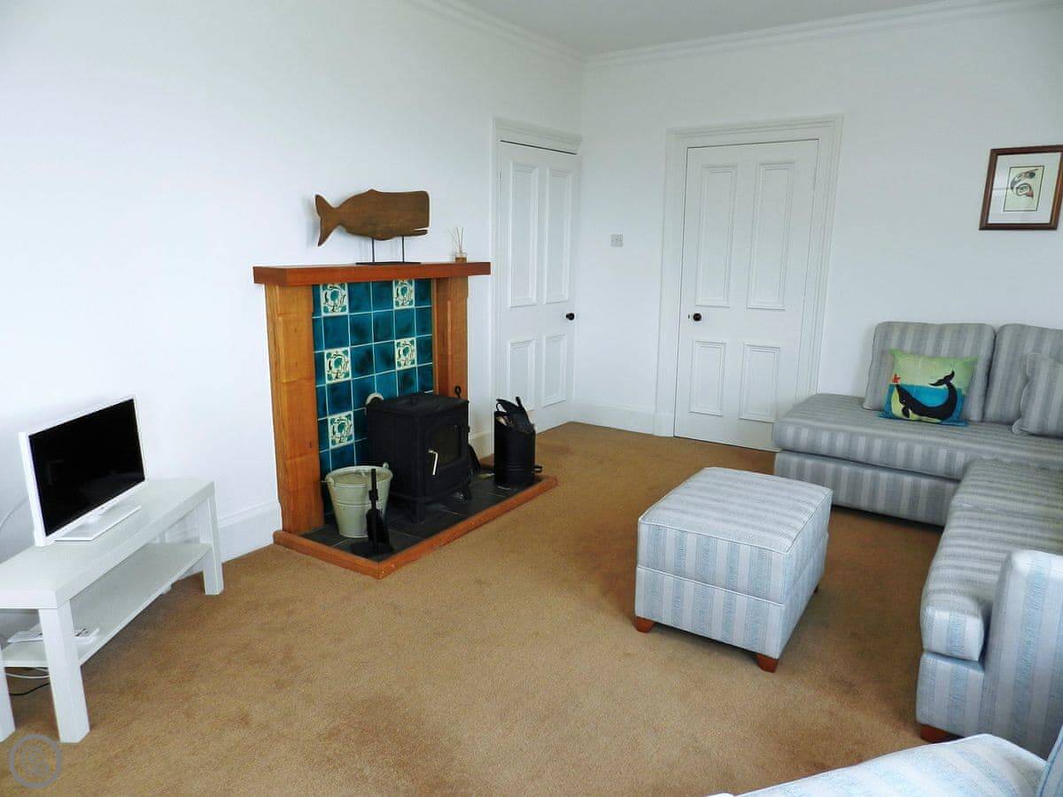 There's a wood burner in the living room and another one in the kitchen. The kitchen one is nice, makes the place feel cosy. The gardens are big and fully enclosed. There's a flat lawned bit at the bottom, good for kids to run about. There's a utility room and a porch for boots and wet coats.