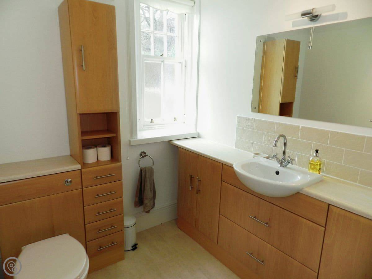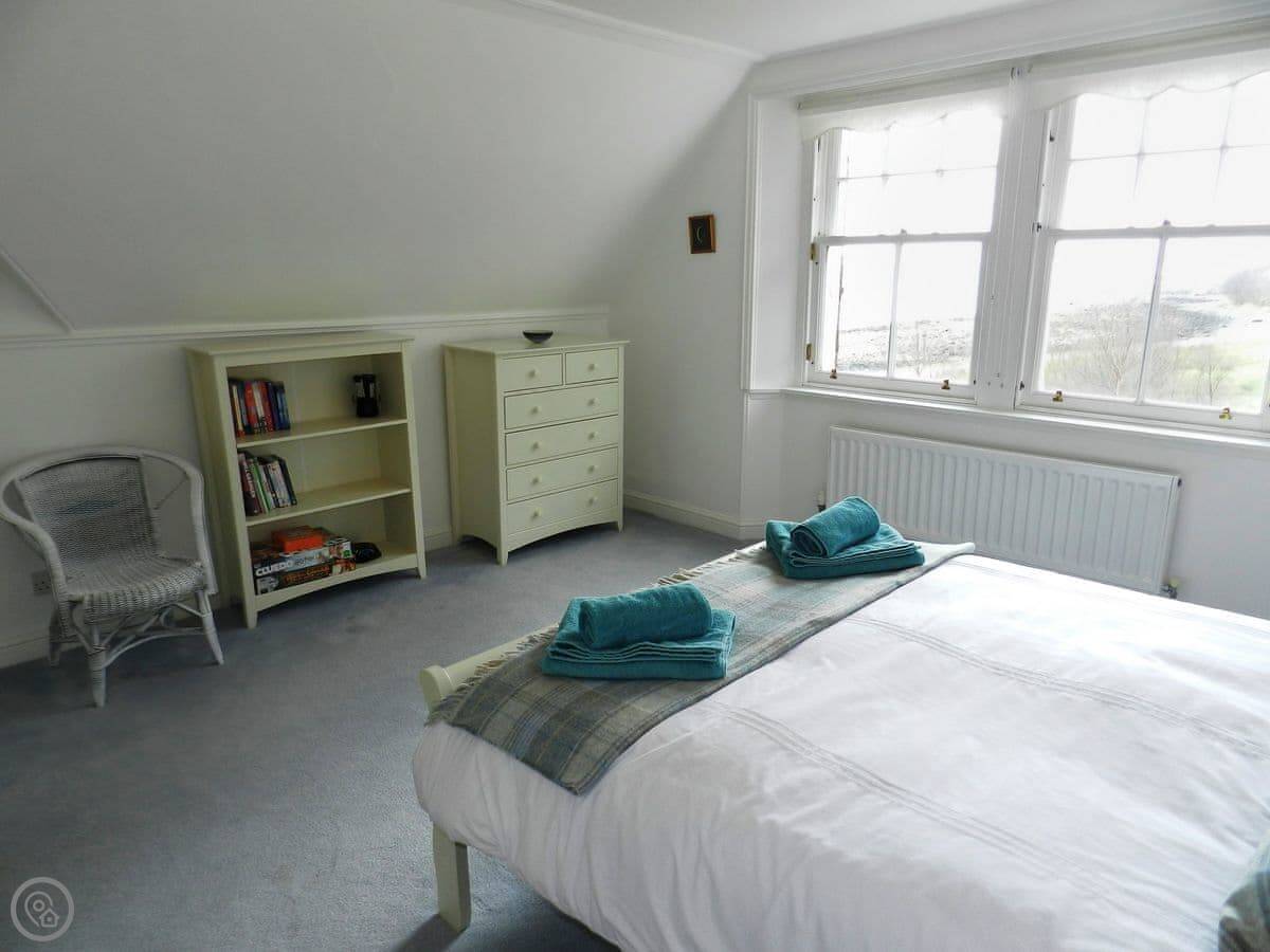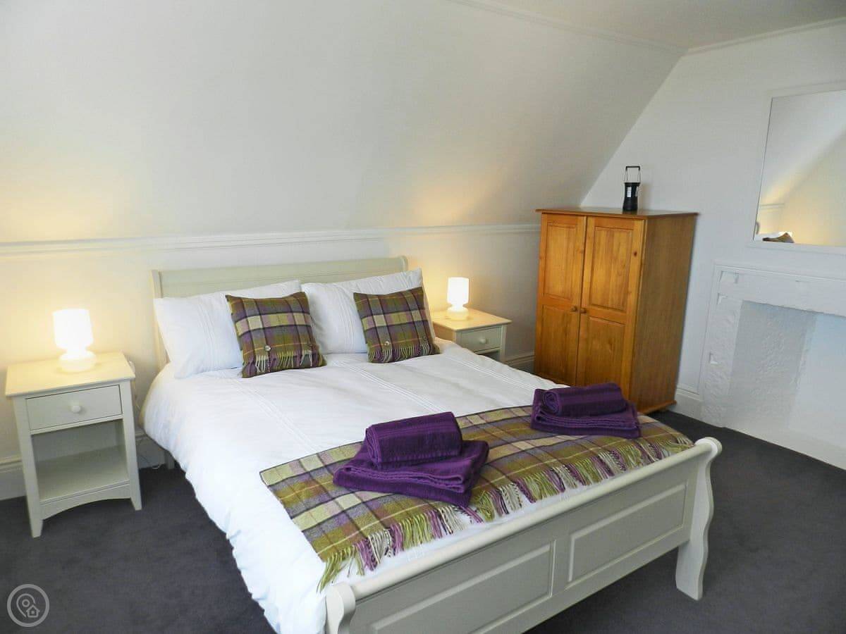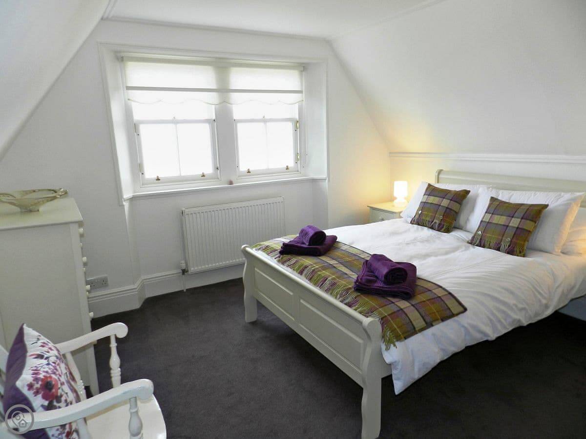 It sleeps six. Three bedrooms, two bathrooms. There's a bedroom and a shower on the ground floor, so it could suit someone who struggles with stairs. The main bathroom upstairs has a roll-top bath. The stairs are normal, not too steep. It's got a 4 Star rating. It's comfortable and clean.