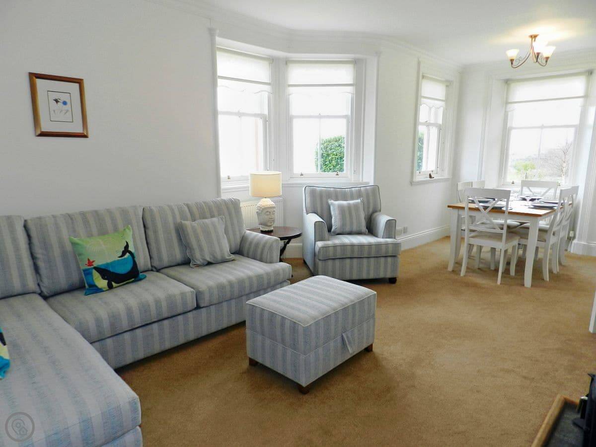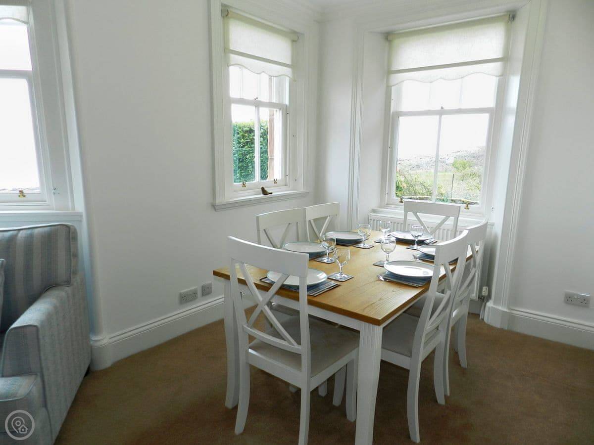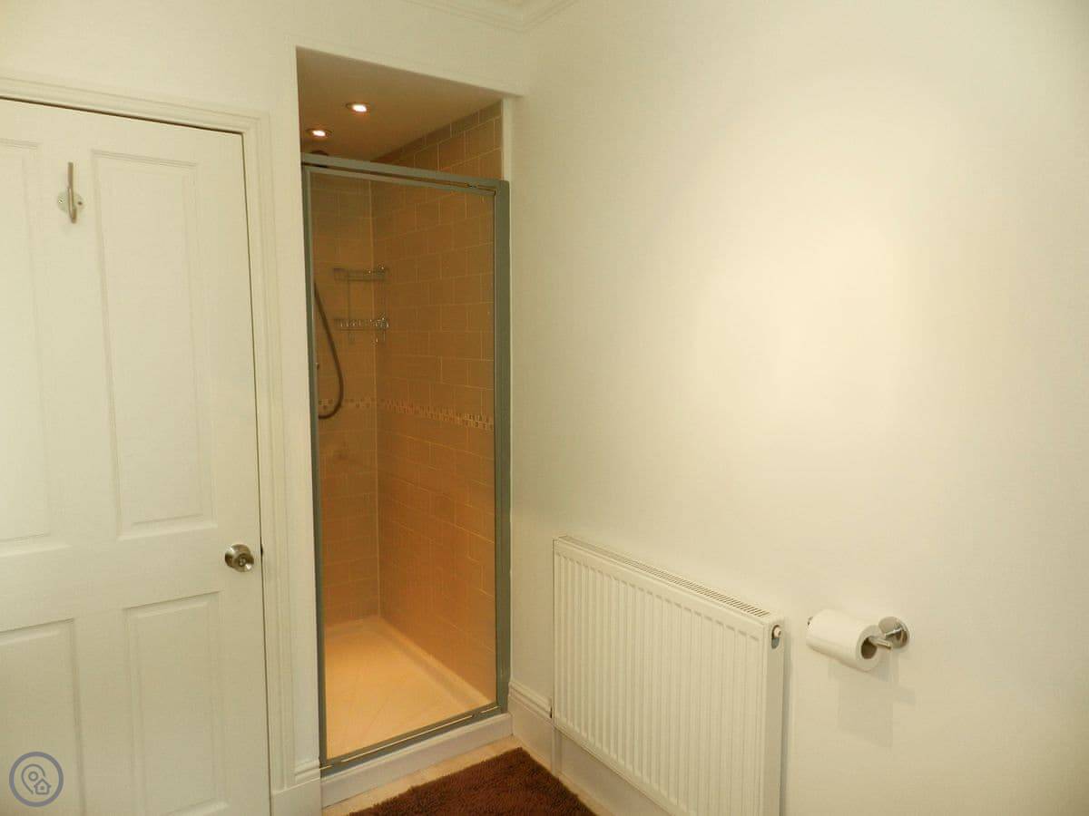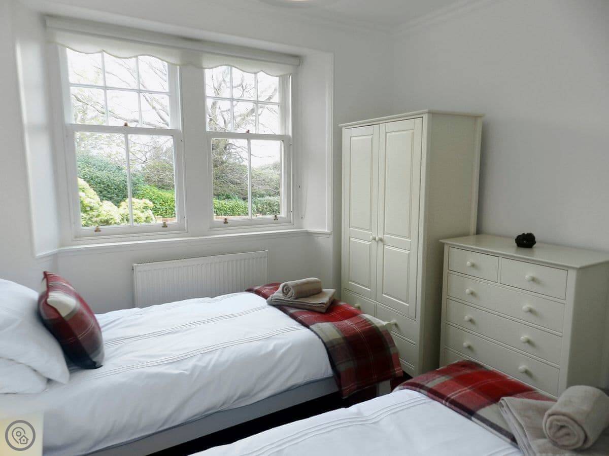 It sleeps six. Three bedrooms, two bathrooms. There's a bedroom and a shower on the ground floor, so it could suit someone who struggles with stairs. The main bathroom upstairs has a roll-top bath. The stairs are normal, not too steep. It's got a 4 Star rating. It's comfortable and clean.