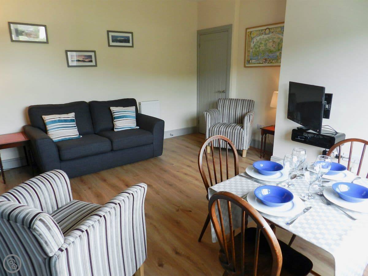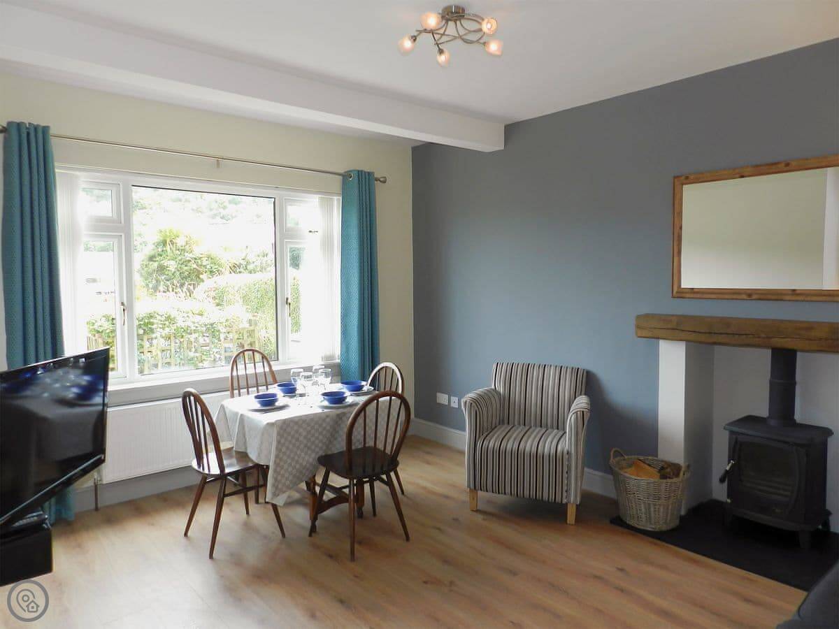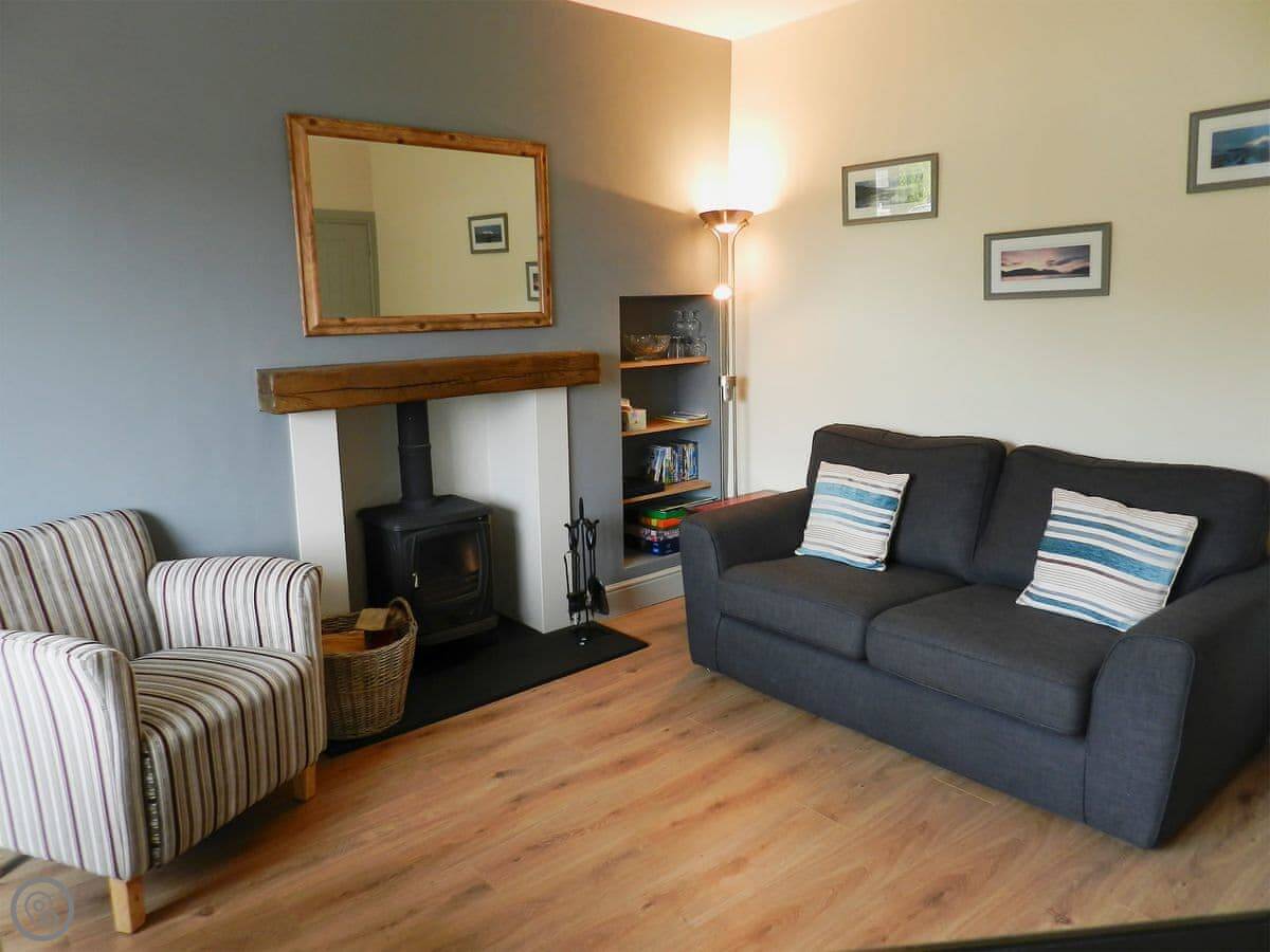 Sunnyside Cottage is on the front row in Lamlash. It's one of the old miners' cottages that were built over a hundred years ago, but it's been done up inside. It's bright, like the name says. The living room gets good light.