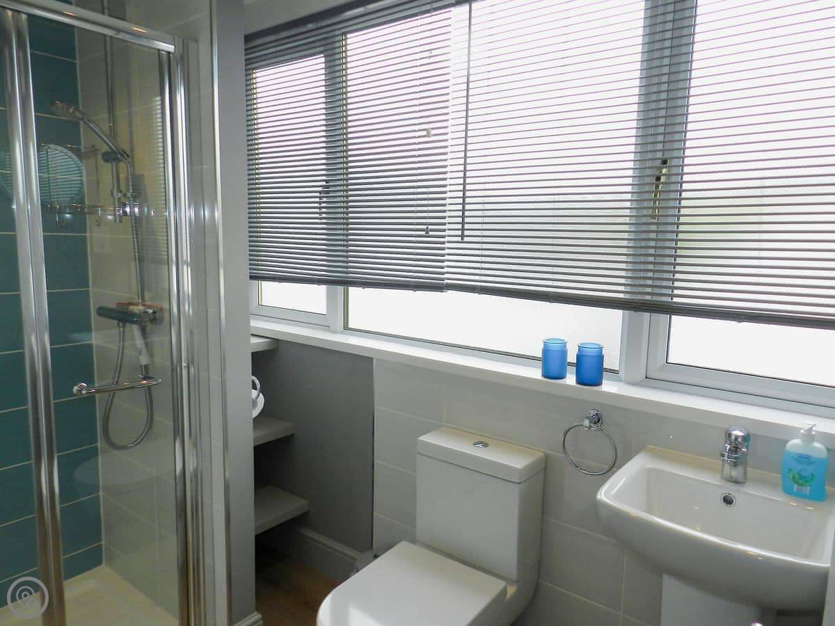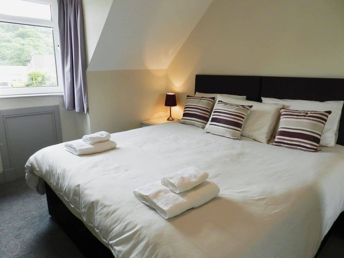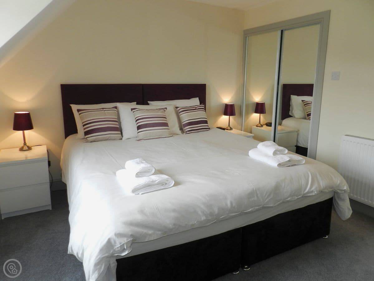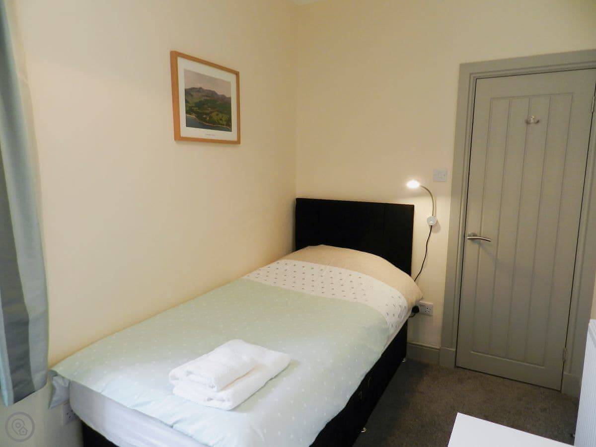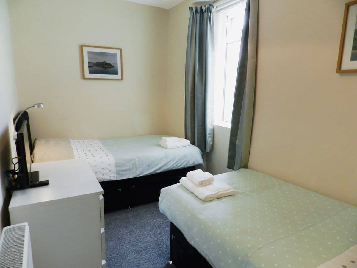 It sleeps four. Two bedrooms, one bathroom with a shower. The main bedroom looks out over the water towards Holy Isle. The bed in there can be a super king or two singles. The other room has twin beds. Both have TVs. There's a wood burner in the living room, which is nice on a cooler evening.