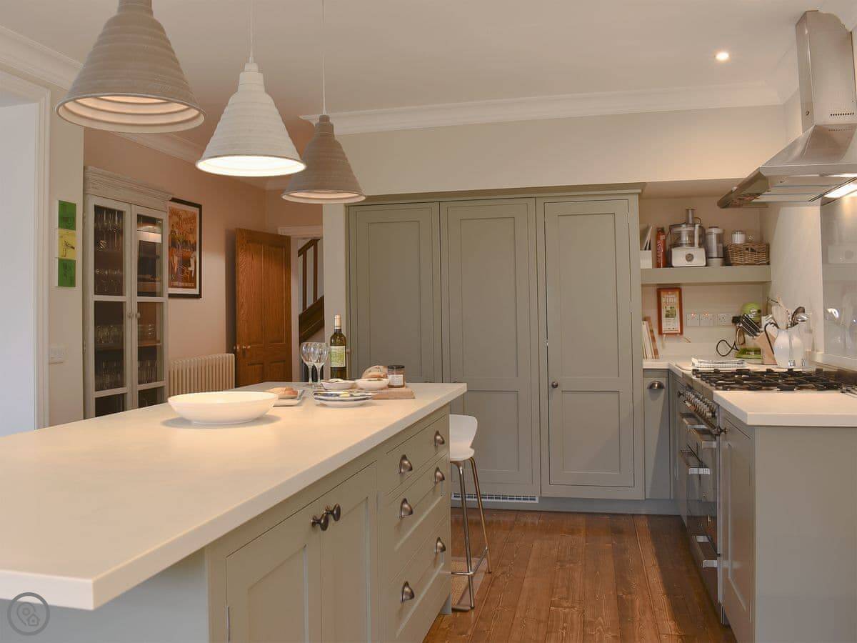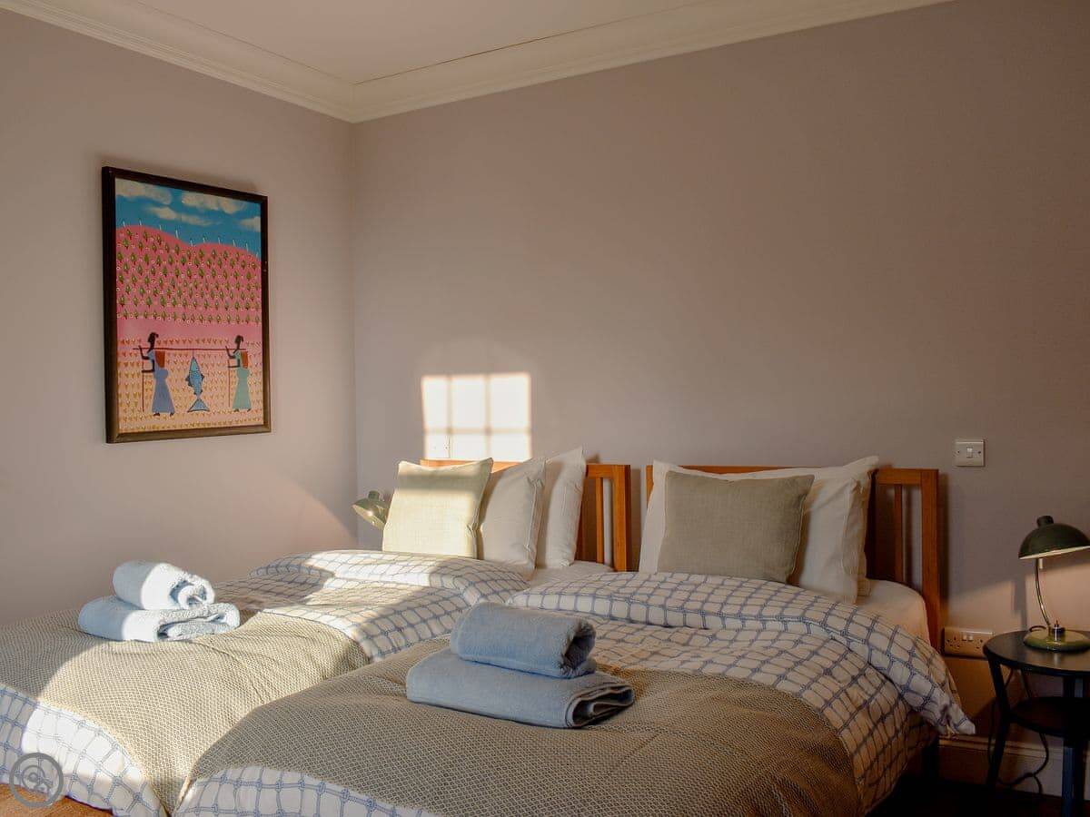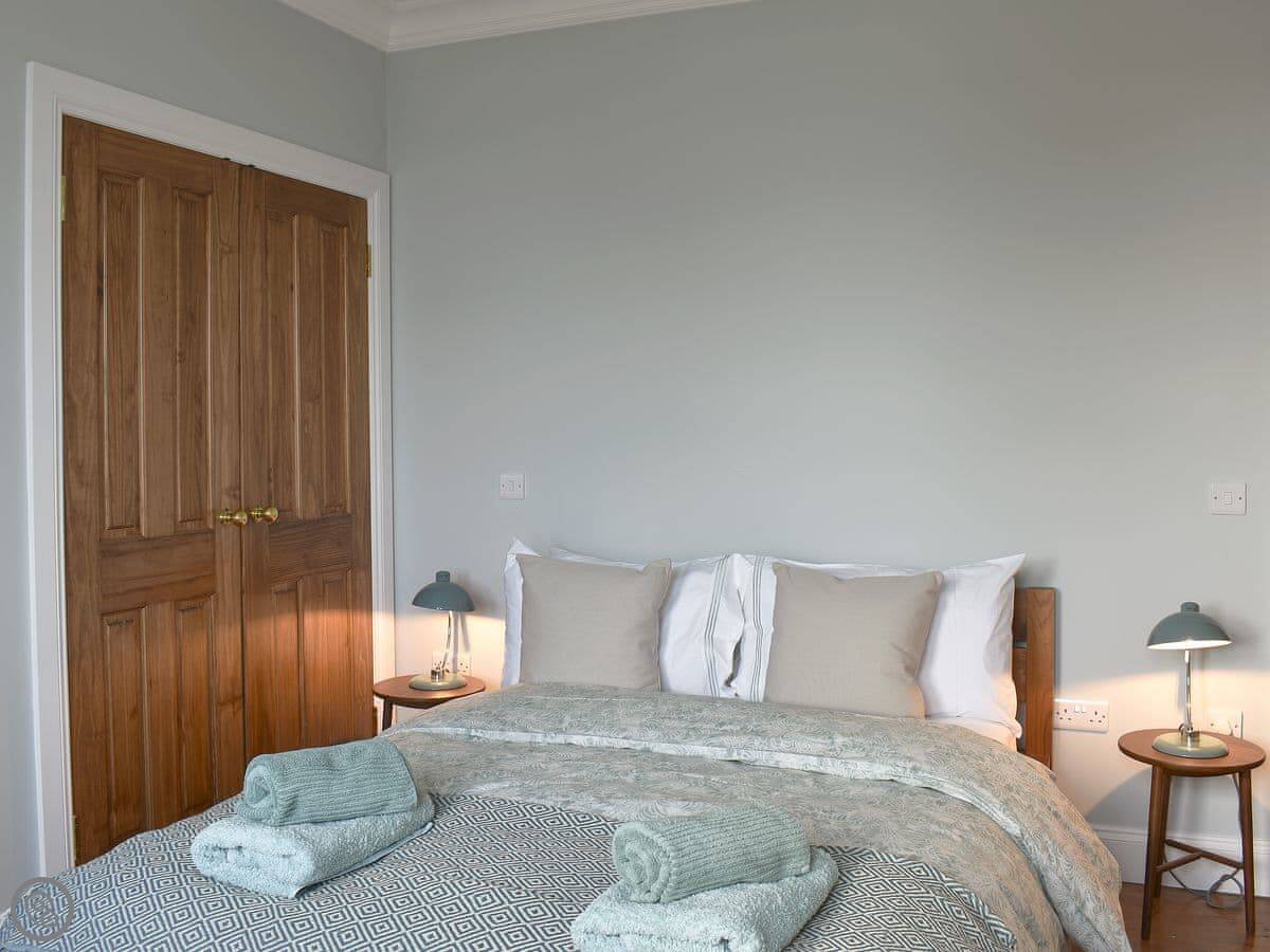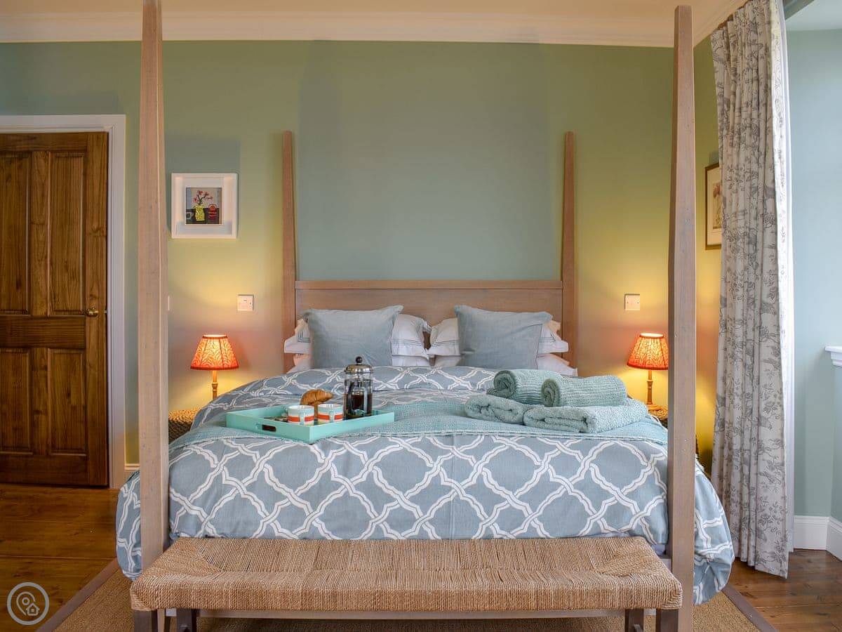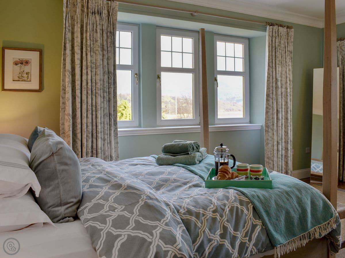 It sleeps twelve people. Six bedrooms, eight bathrooms. It's a 5 Star place, which means it's been done up to a high standard. Everything feels finished and considered. All the bedrooms have their own en-suite shower room, and one has a freestanding bath too. There's also a separate family bathroom with a roll-top bath.