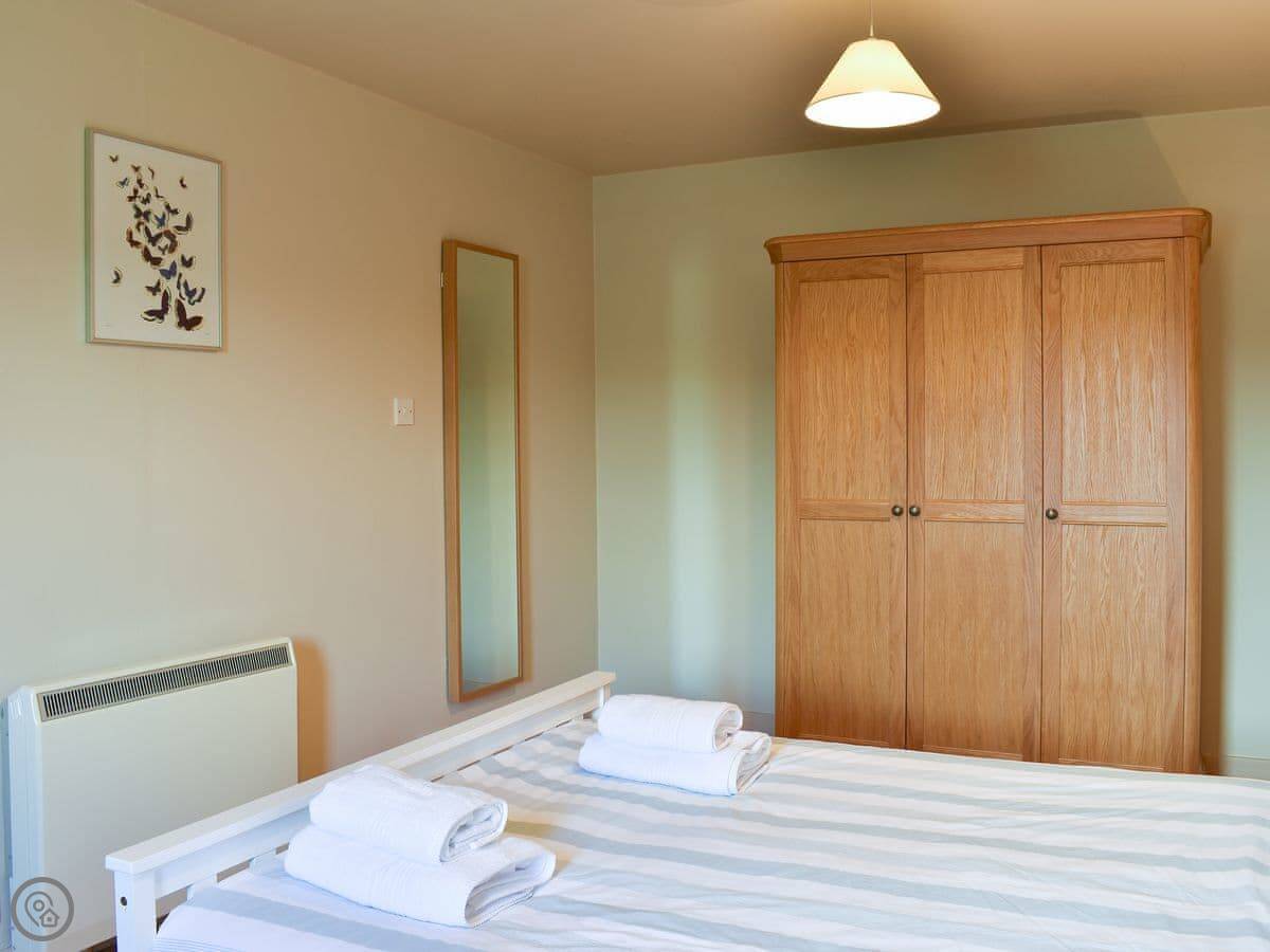 Inside, there's a washing machine, a cot, a wood burner. Bedding and towels are included. WiFi. Parking for two cars on the drive. One well-behaved dog is allowed.