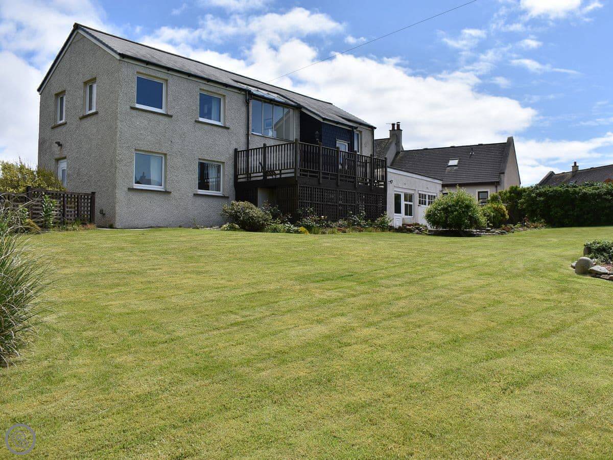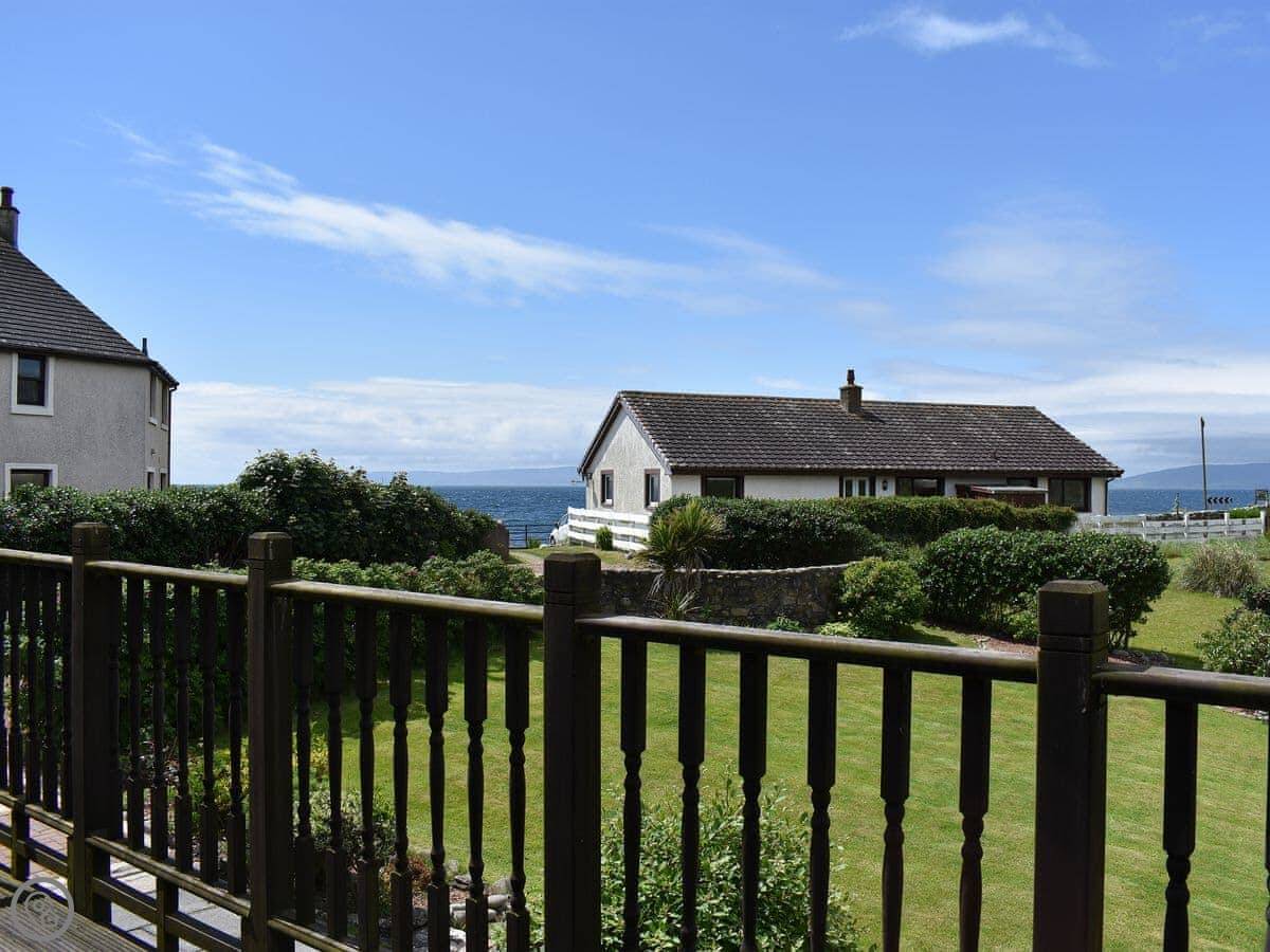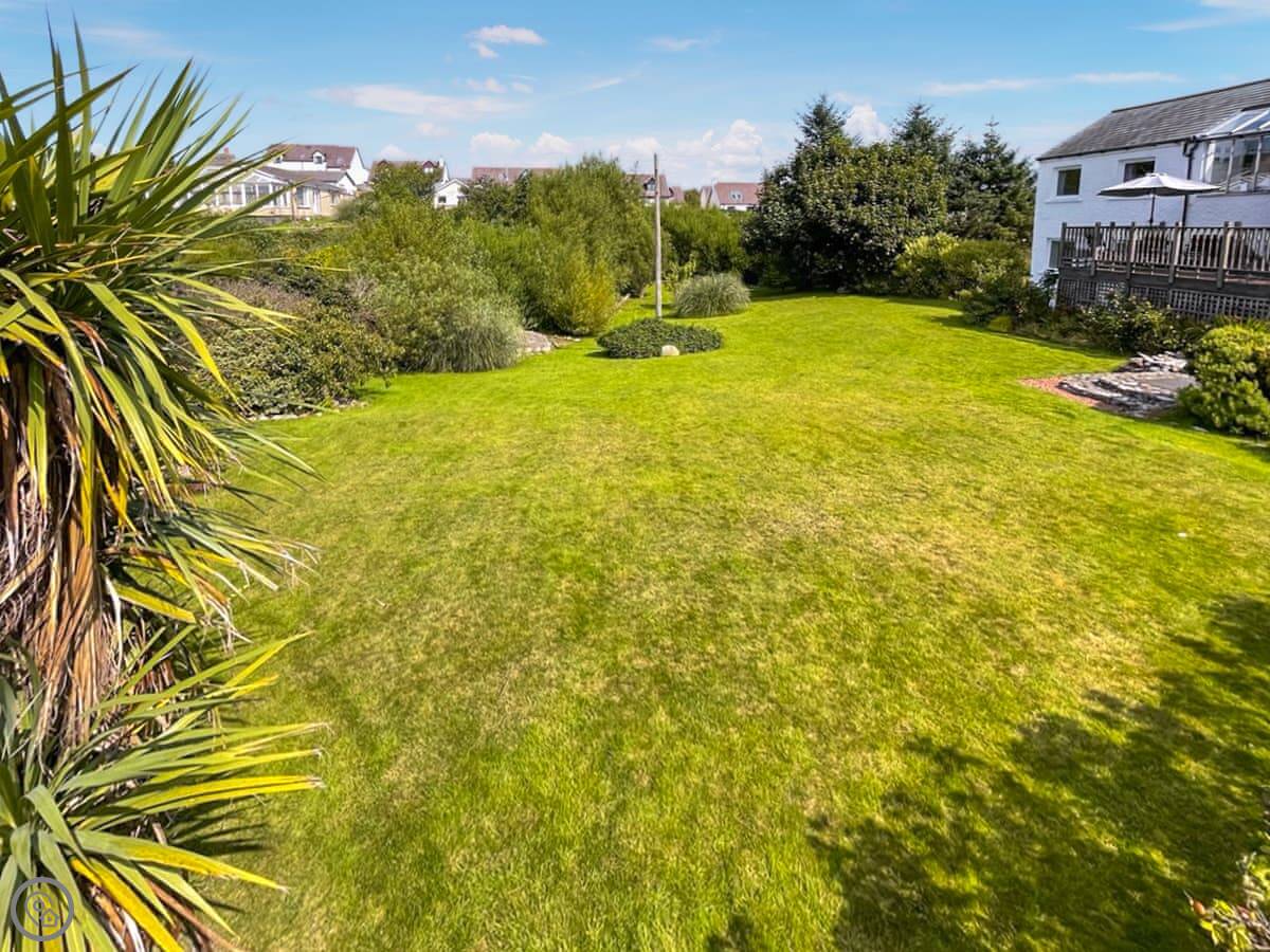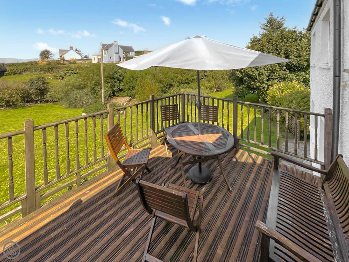 The garden is decent sized and there's a deck. You can see the sea from it.