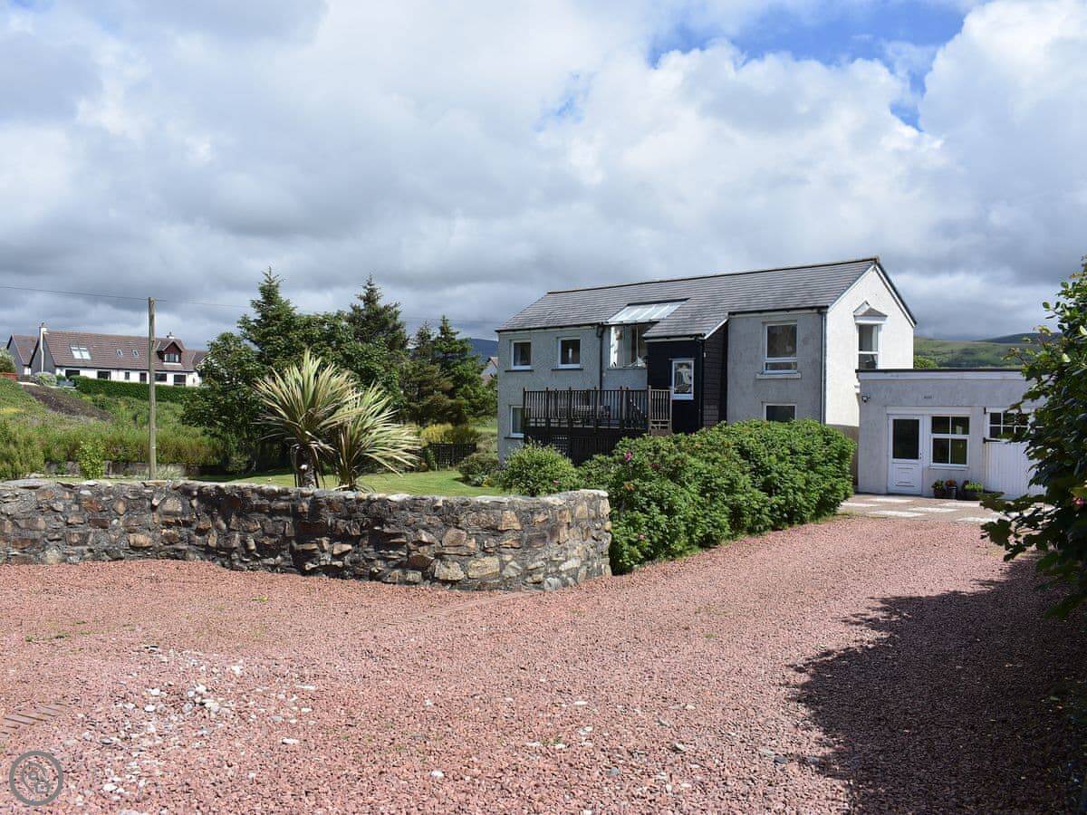 This is Hollinhaven. It's a house in Blackwaterfoot on Arran, detached. You look out at the sea from the front.