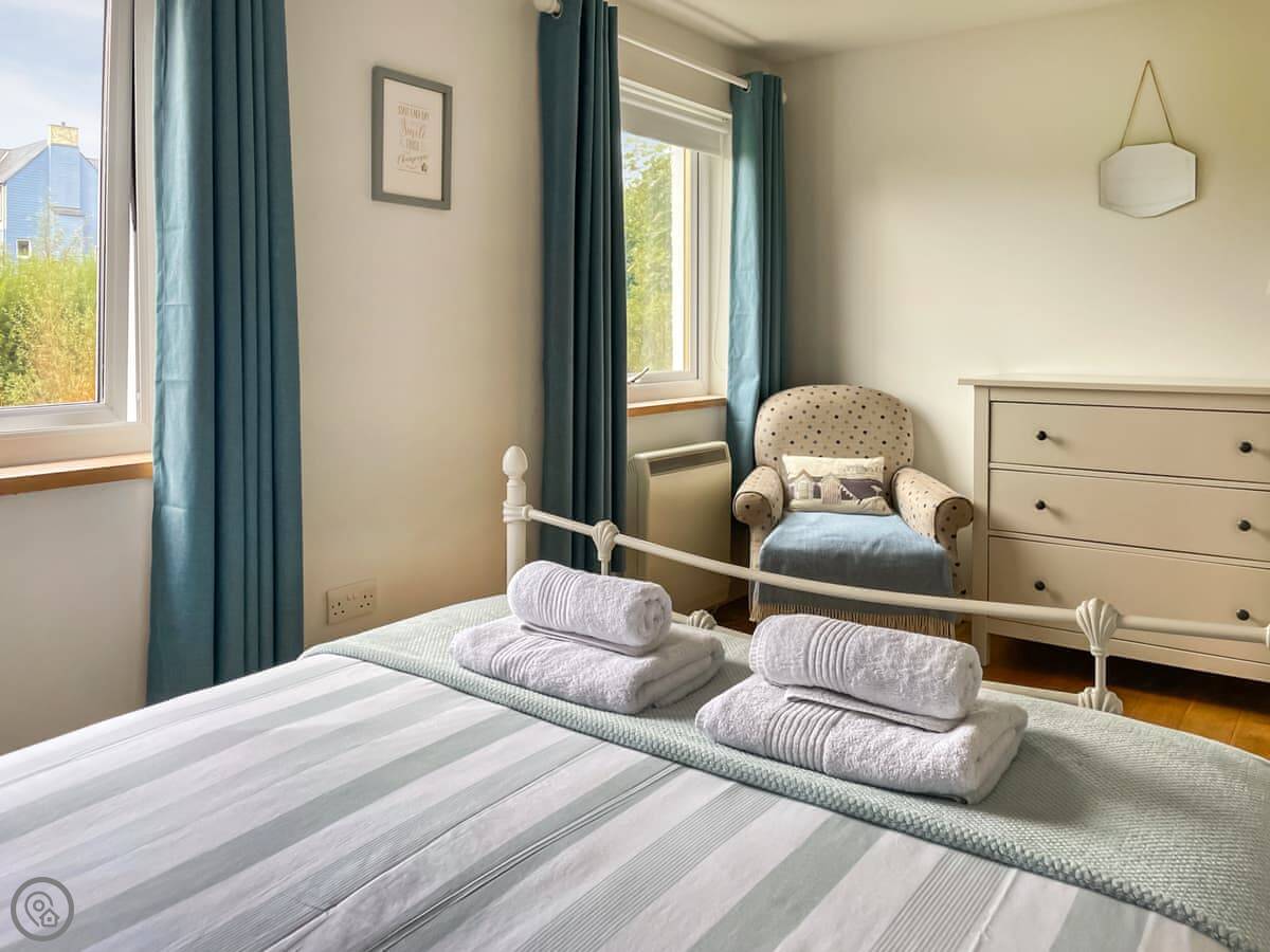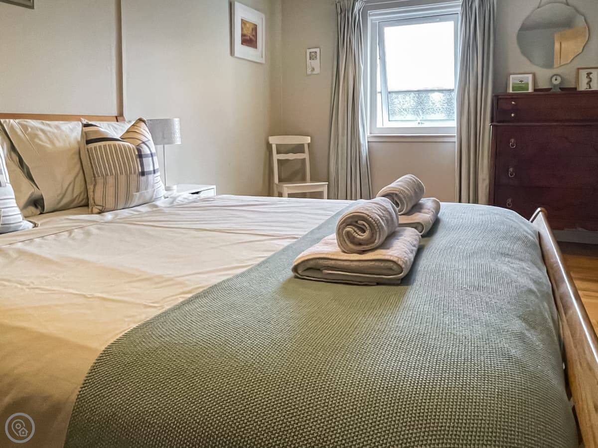 One of the bedrooms and a shower room are off the second living room, down its own stairs. It works well if a couple in your group wants a bit more privacy, or if you've got older kids.