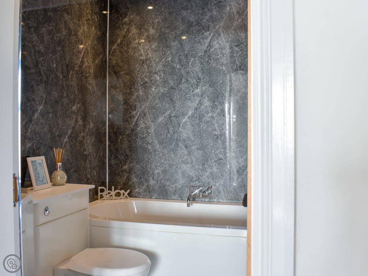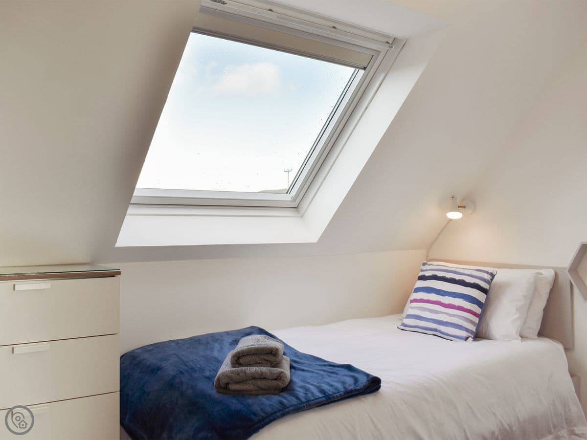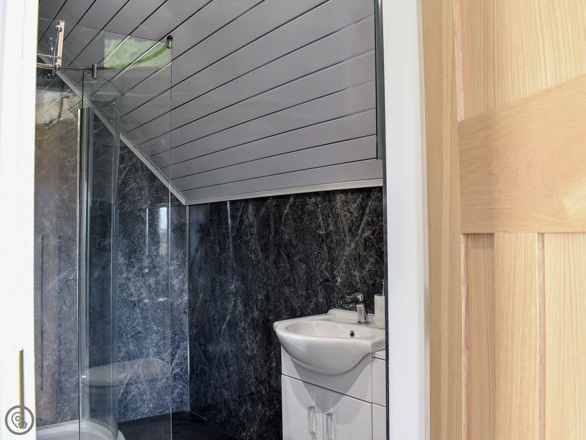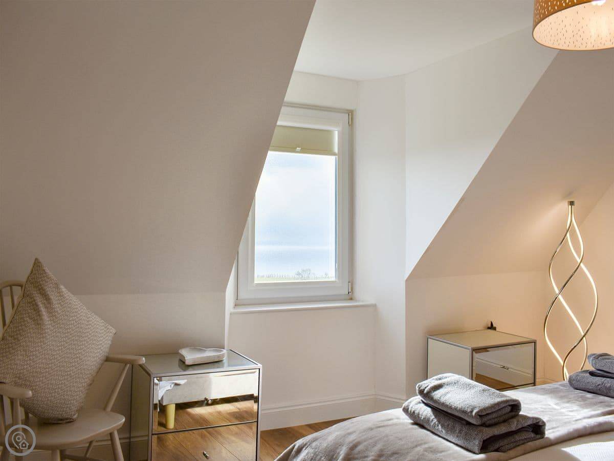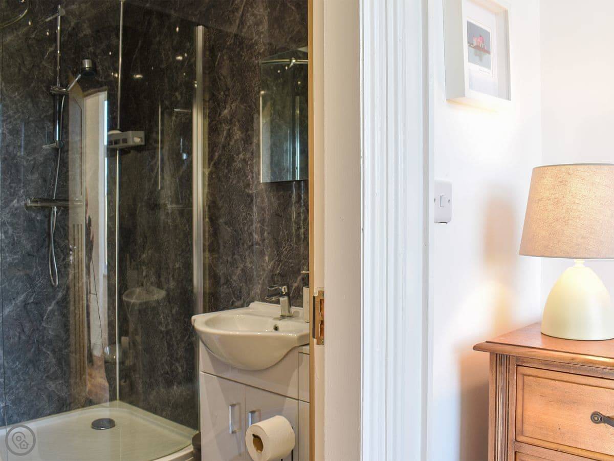 Sleeps nine. Four bedrooms, four bathrooms. Three of the bedrooms have their own shower room, which is handy. One of those is on the ground floor. It's a 4 Star place.