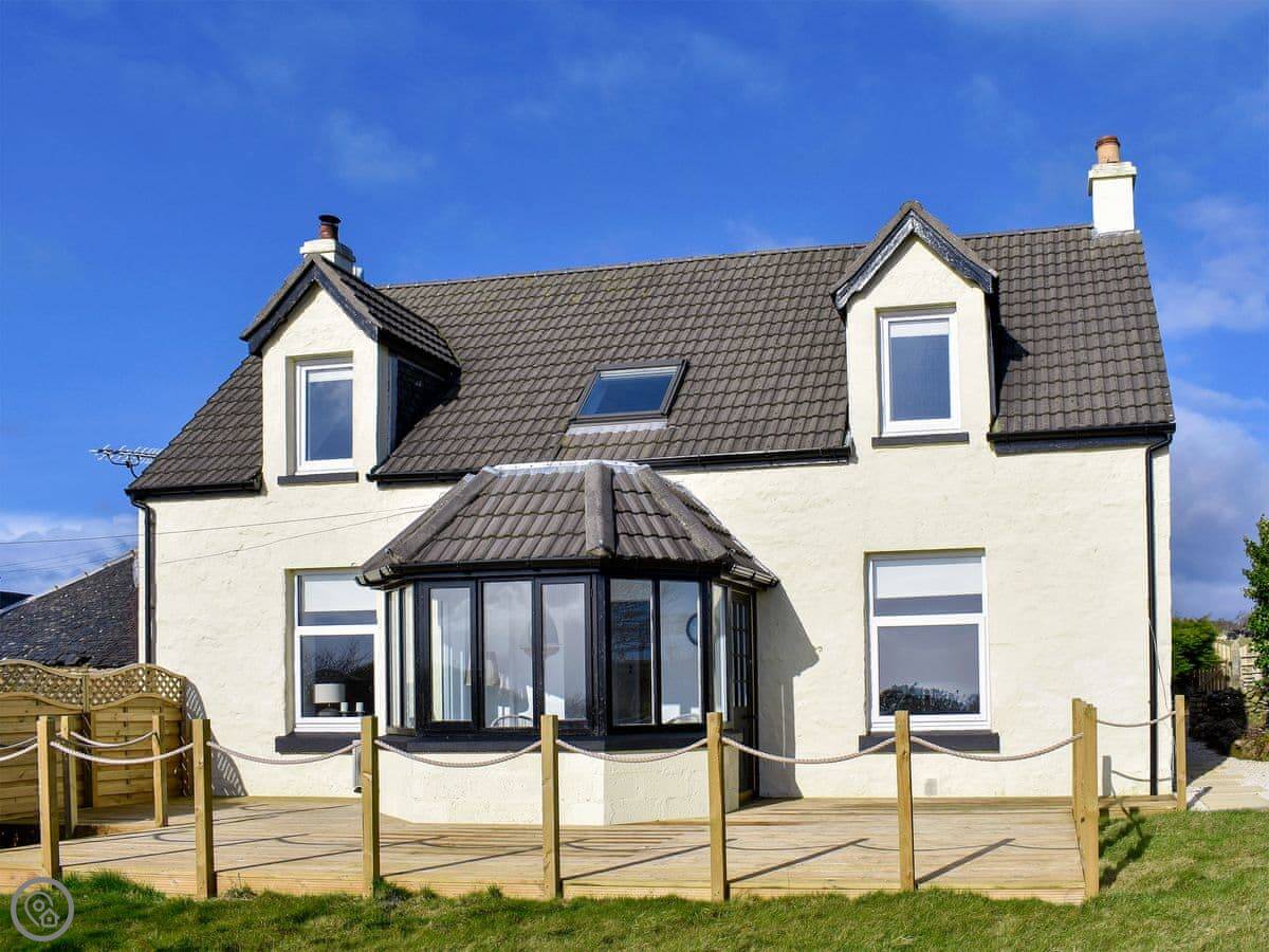 This is Loanmhor. It's a detached house near Shannochie on Arran. You get there down a rough farm track, just so you know. It looks out over fields.
