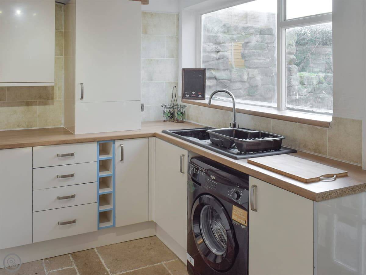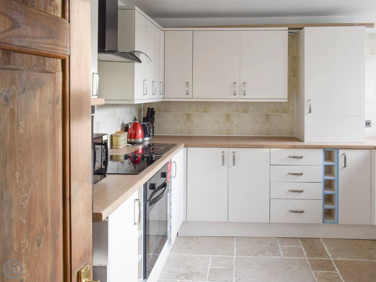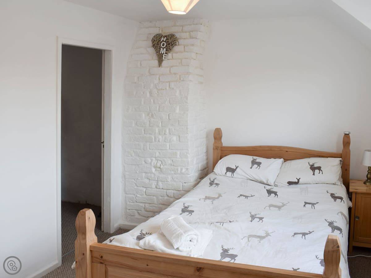 Inside, there's a woodburning stove, WiFi, a TV, and a washing machine. We provide bedding and towels. There's a cot, highchair, and stairgate if you need them. On-site parking for one car. And we take up to four dogs.