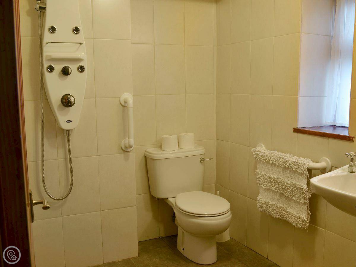 Inside, it sleeps eight. Four bedrooms, three bathrooms. One of the bathrooms is a wet room on the ground floor. It's got a 4 Star rating. We do our best to keep it comfortable and clean.