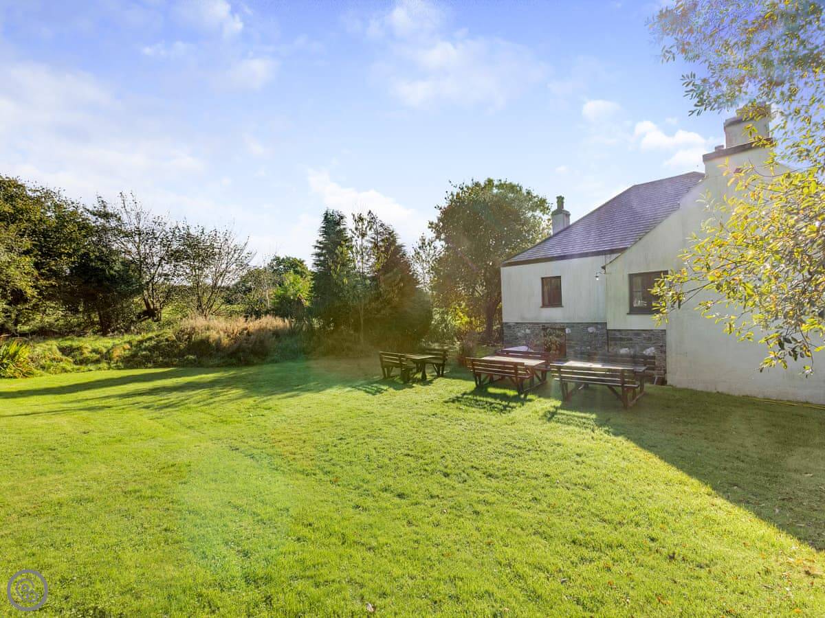 Sherrill Farmhouse is in Dunterton, right on the Devon and Cornwall border. It's a big old farmhouse, part of a group of cottages converted from the original barns. You get the whole house to yourselves, and it's on about 16 acres of land.