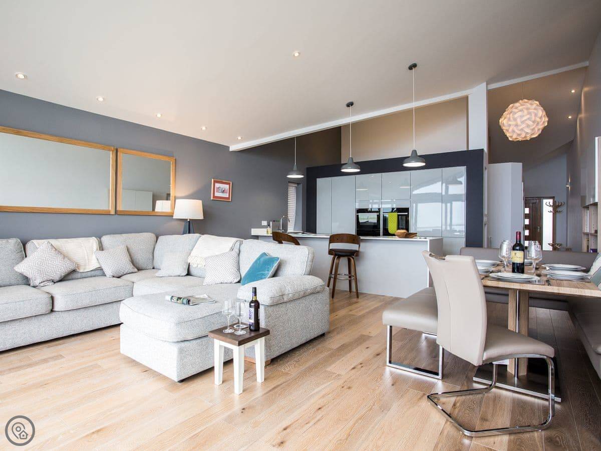 The ultimate coastal getaway, Harbour Lights is a unique, luxurious, semi-detached holiday retreat on the edge of the pretty north Devon fishing village of Appledore. With breathtaking sea and estuary views from almost every room, it is ideal for a seaside holiday at any time of the year. The property is beautifully presented with a stunning double height living area, the perfect spot to enjoy a family meal, or soak up the sights and sounds of the ocean from the large balcony. Underfloor heating, oak floors and three beautiful bedrooms make this the ideal choice for families and friends looking to escape and unwind.