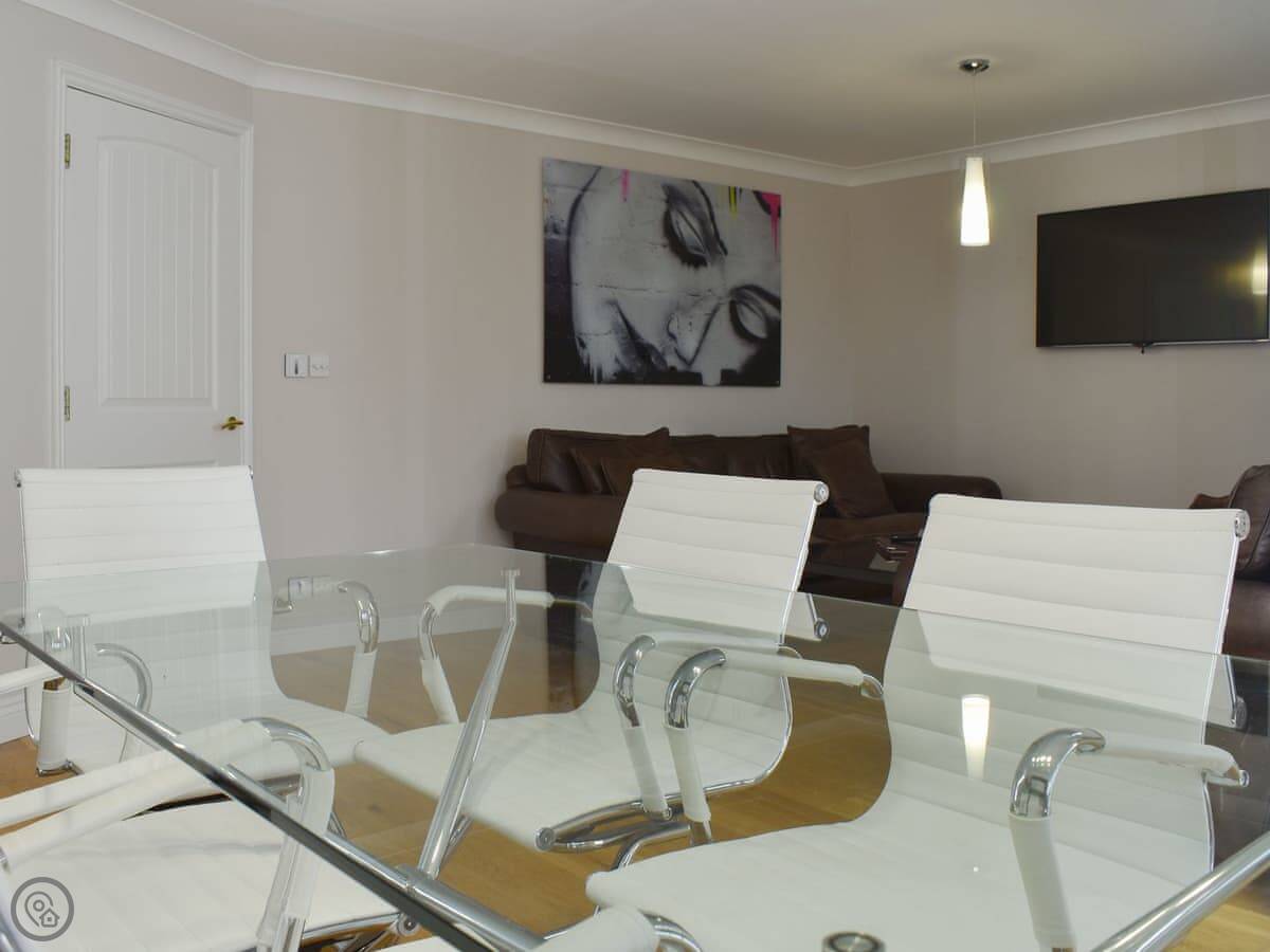 It's got two bathrooms, which is handy. There are two bedrooms, both with king-size beds. It's a luxury rating, which translates to good quality fixtures and fittings. There are large TVs and reliable broadband.