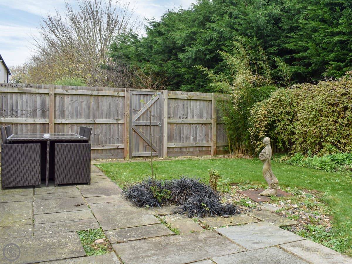 The cottage is open plan downstairs. Outside is an enclosed patio area, so it's secure.