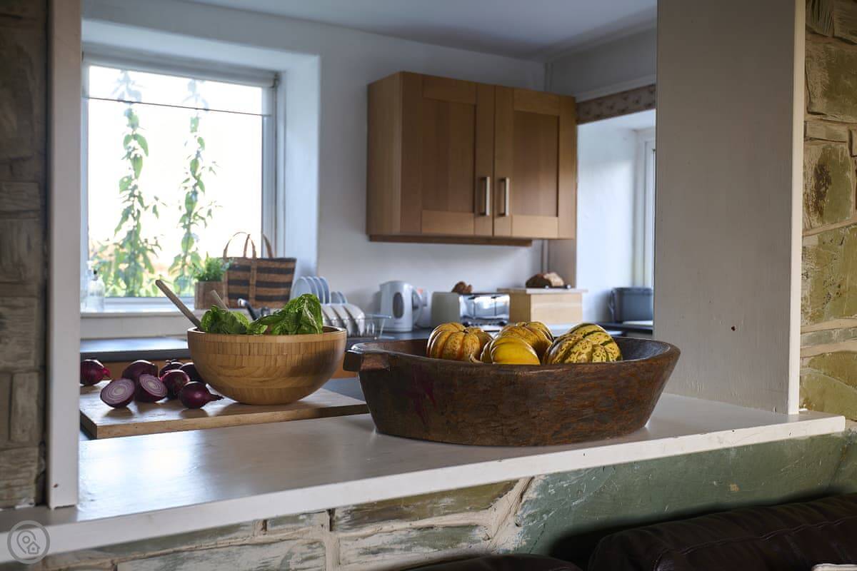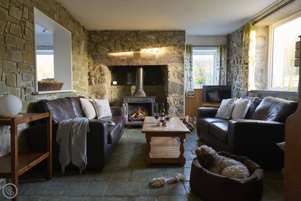 It's a 4 Star cottage. That means it's comfortable and well-equipped. The main room is open plan, kitchen, dining and living area all together. There are original slate floors in part of it and a log burner for cooler evenings.