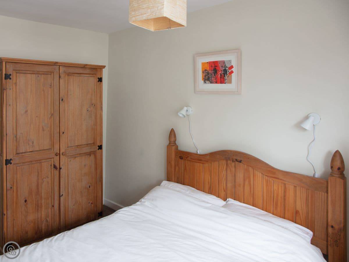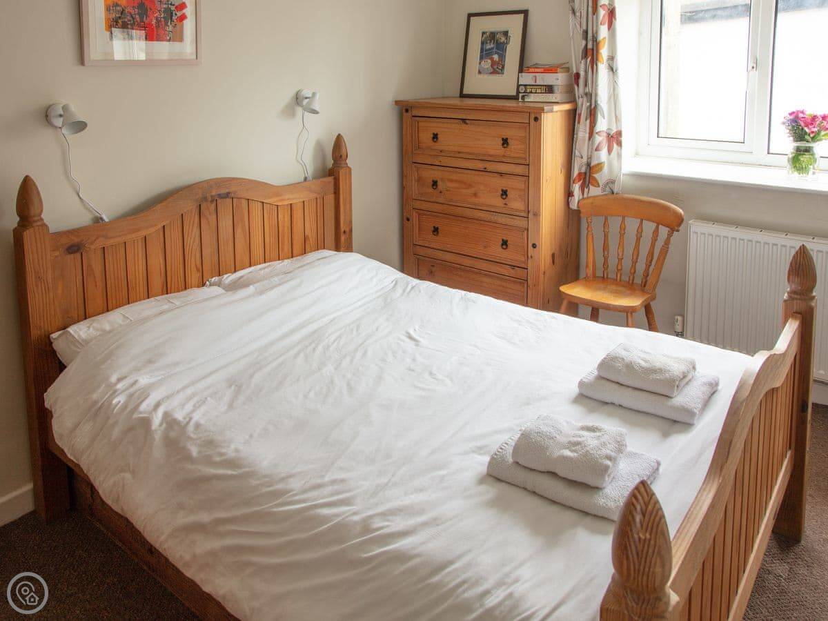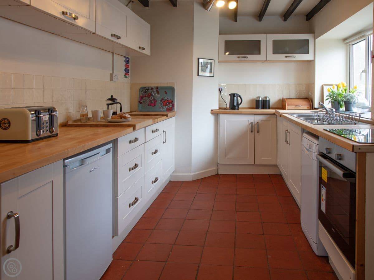 Inside, it's got what you'd expect. Wood burner, dishwasher, washing machine, TV. Bedding and towels are included. There's parking for a couple of cars. You can bring up to two dogs.