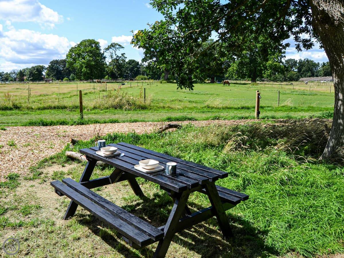 It's a detached place, set back in some woodland. You look out over paddocks with horses. It's very quiet. It's got a 4 Star rating, so it's comfortable and well looked after.