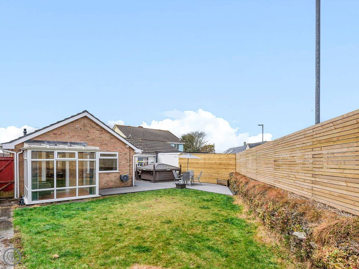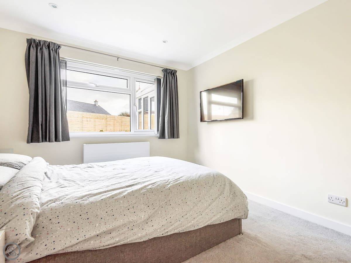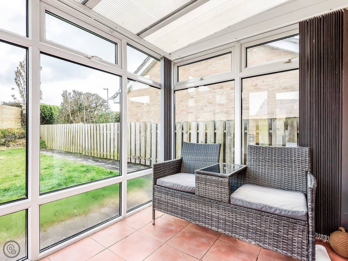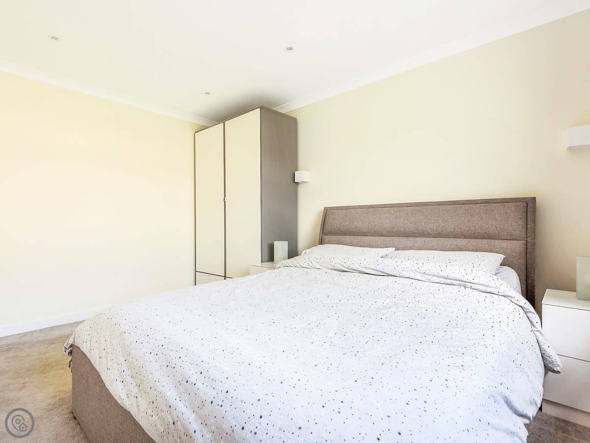 Set to the rear of the property looking over the garden, is a large bedroom with an electric split rising king-size bed and there is also a wall mounted Smart TV. Next to the bedroom is a further room which has a sofa bed, perhaps for an extra guest to use if required. This room can be used as a study and provides access to the conservatory, which has some seating. There is a wide doorway out to the decking and garden. Across the hall is a spacious walk-in wet room with rain shower, ideal wheelchair access or for guests with restricted mobility.