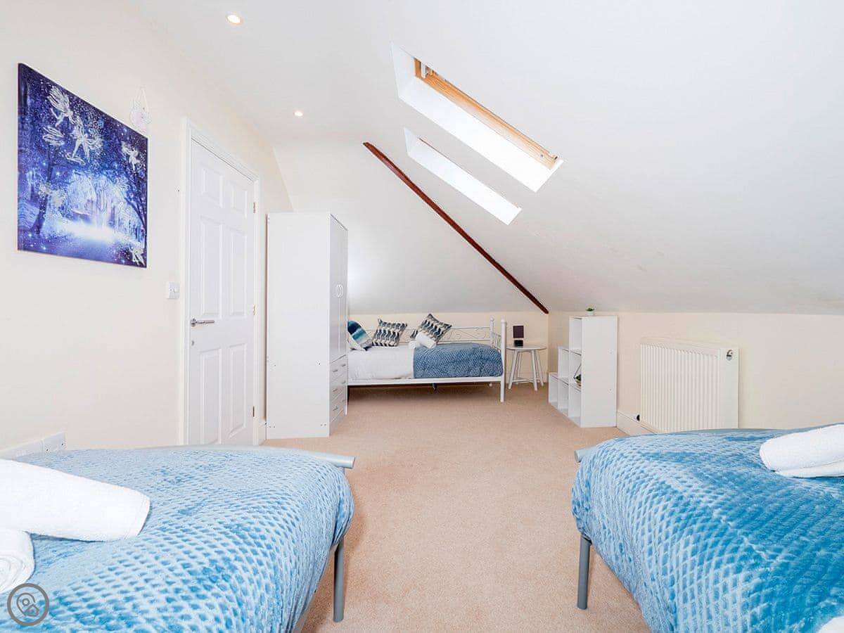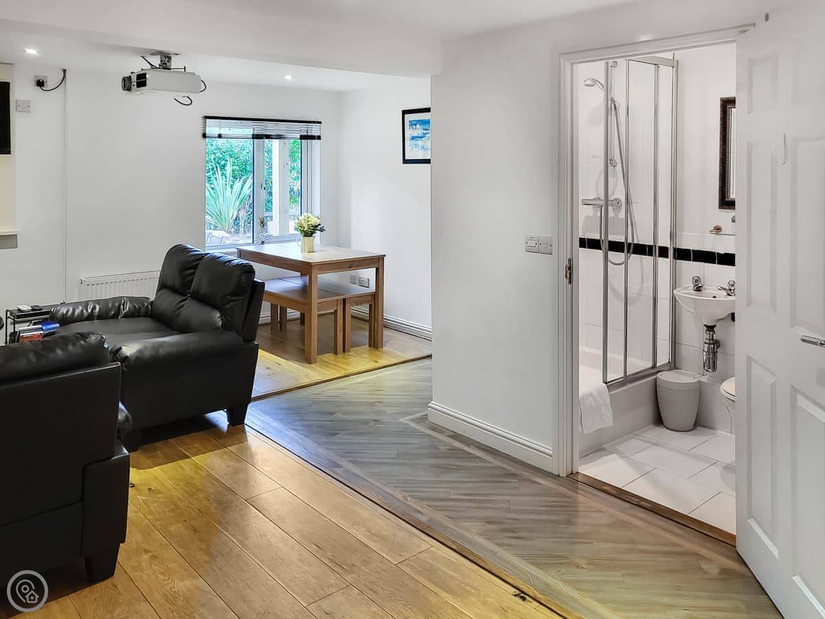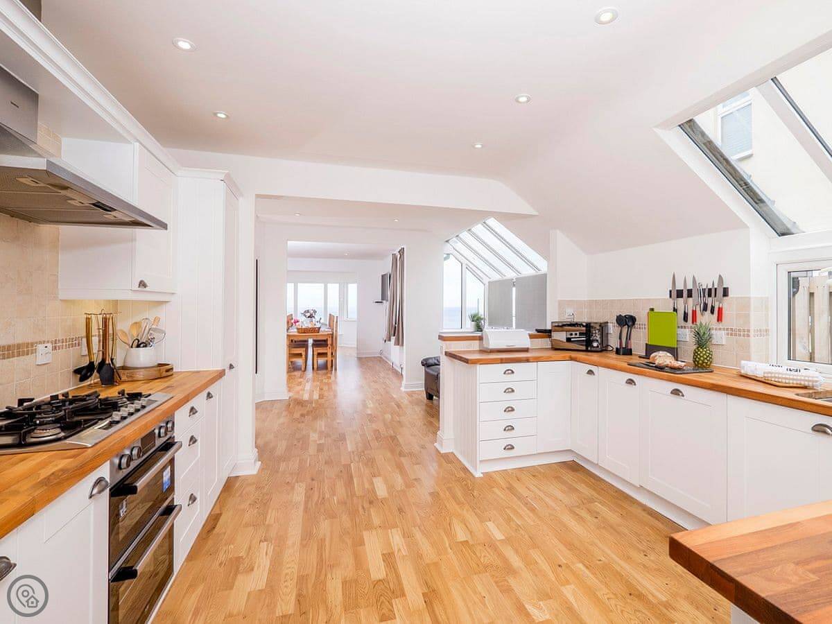 Inside, it's got what you'd expect: a dishwasher, washing machine, proper TV and wifi. The games room is in the garage conversion. Parking for three cars on the drive.
