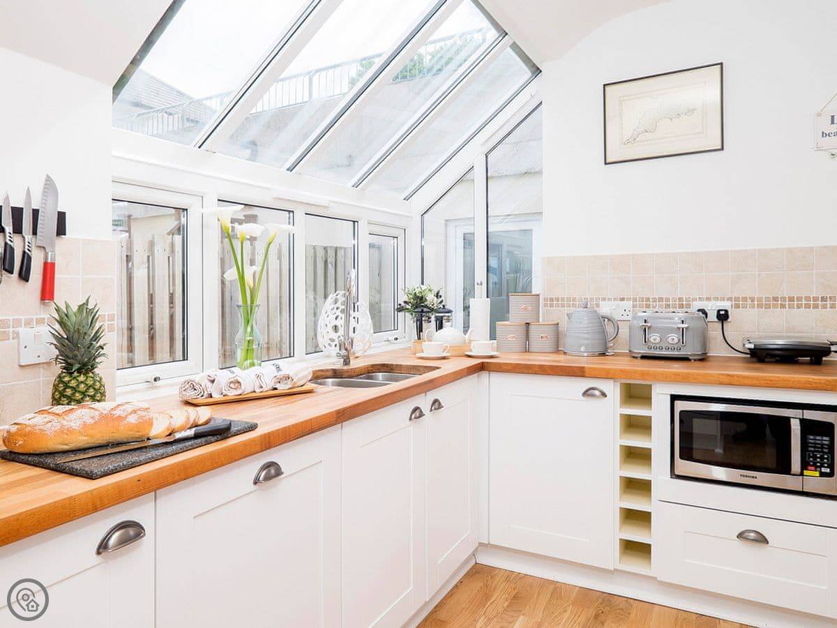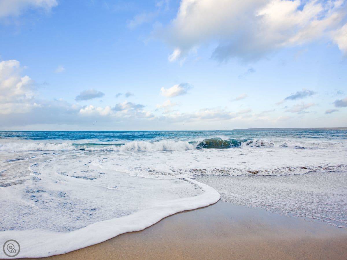 You can walk down to Carbis Bay beach in a few minutes. It's a good, sandy beach. The train station into St Ives is a short walk from the house. The train takes about three minutes, or you can walk the coastal path. It's a little over a mile. St Ives has the Tate gallery, the harbour, and all the shops and restaurants. It gets busy in summer.