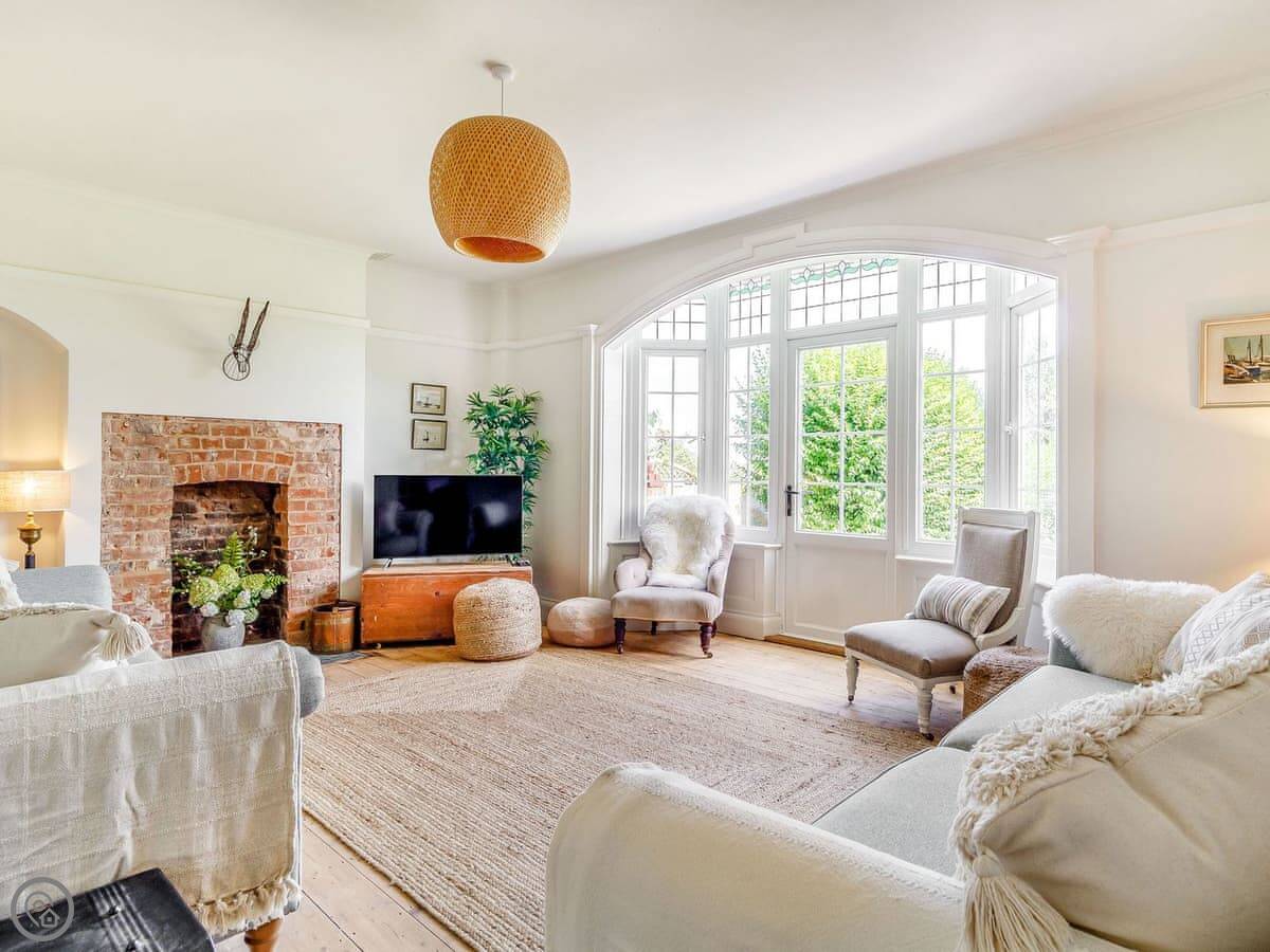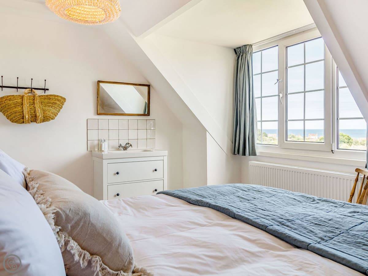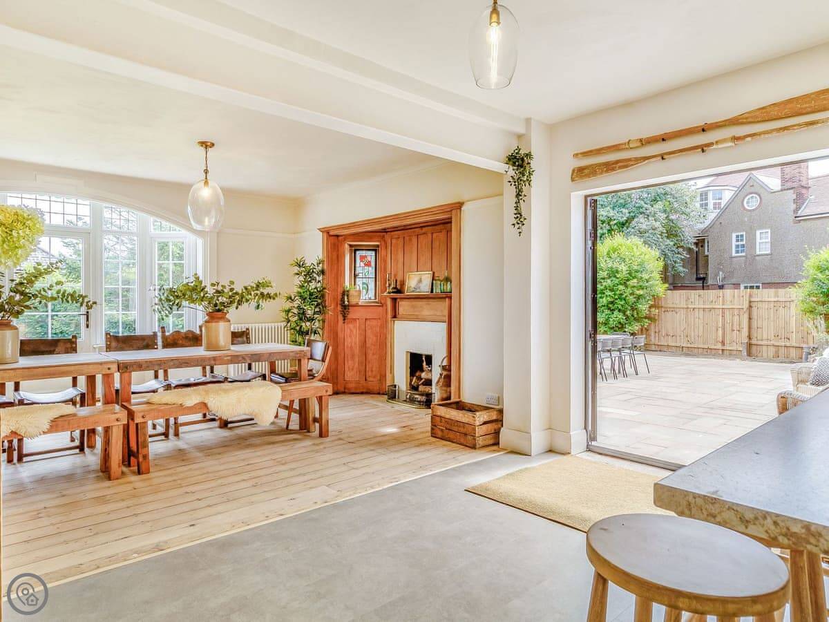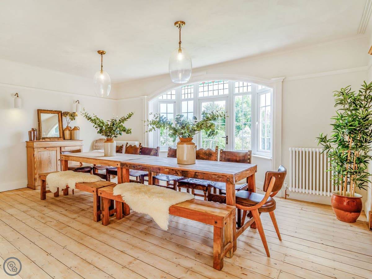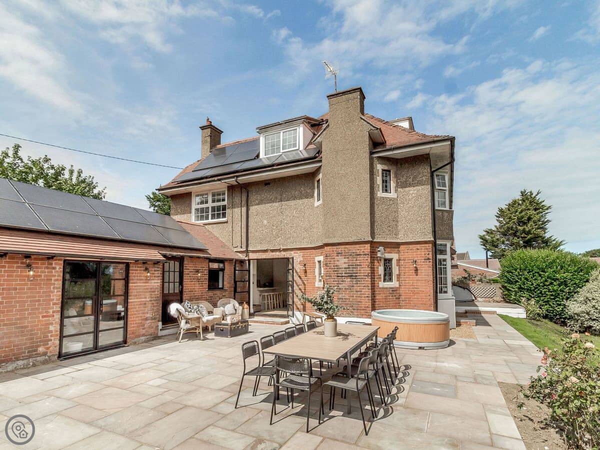 The main thing is the space. There's a big kitchen and dining area that everyone can fit in, a living room with sofas, and a separate TV snug. Useful if some people want to watch something different. You can see the sea from a lot of the windows, not right on the beach but a view over the rooftops.