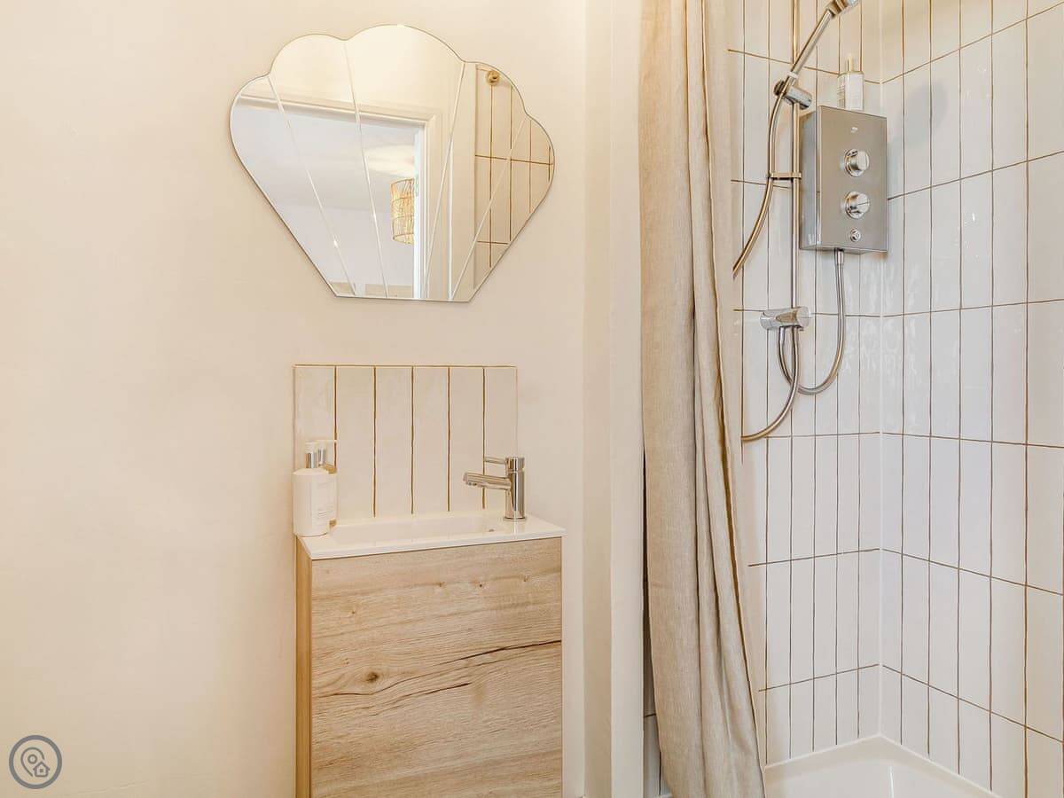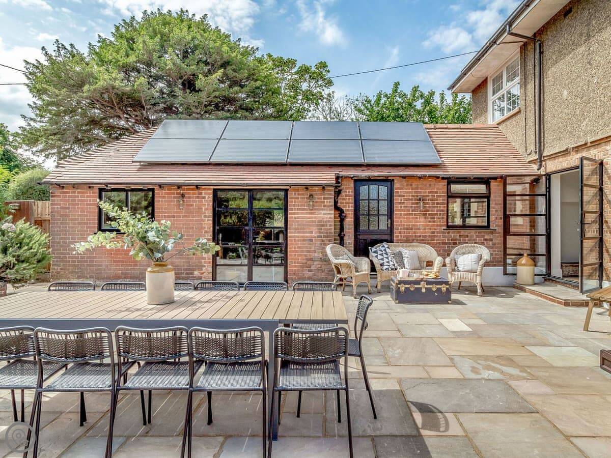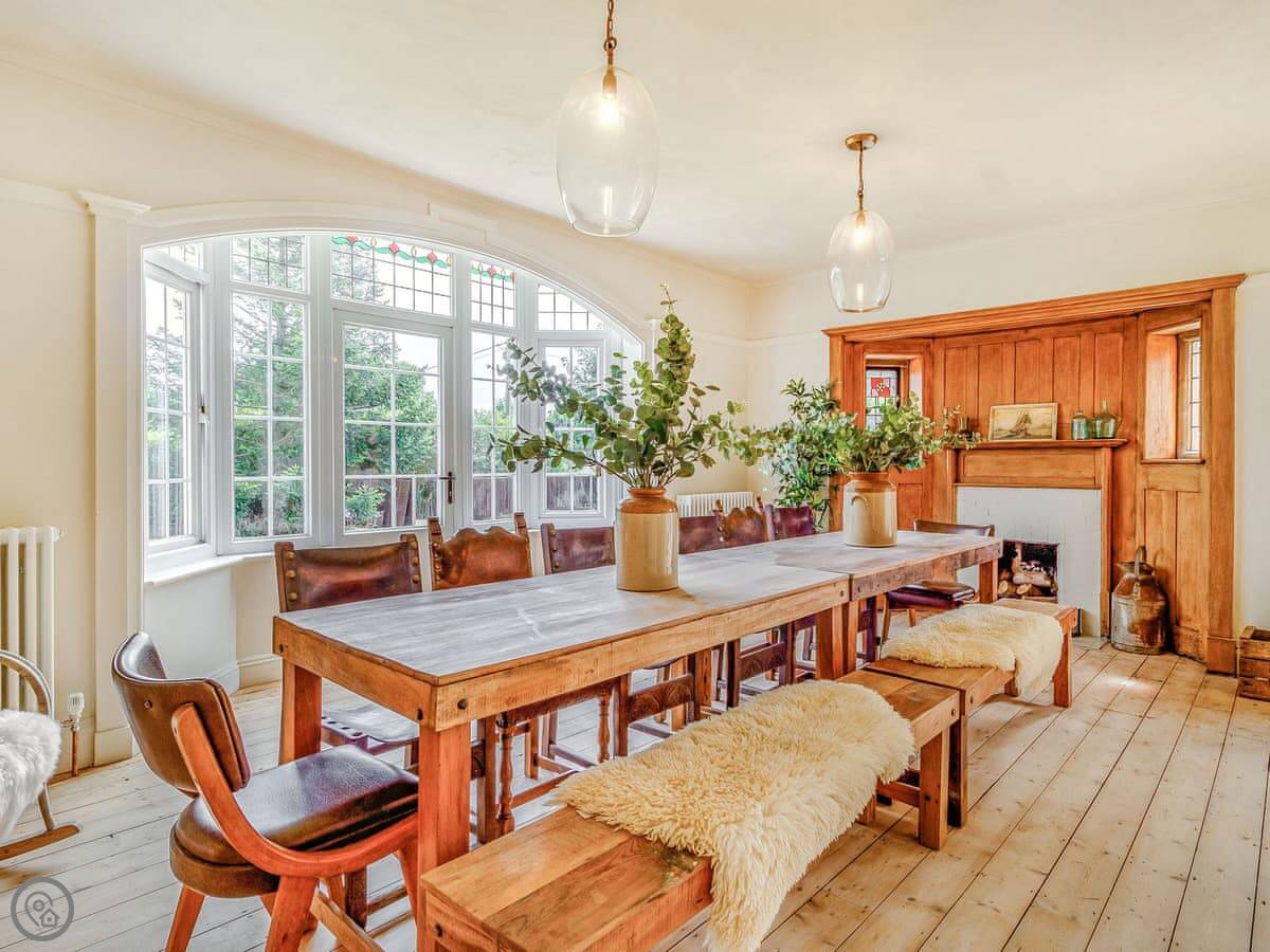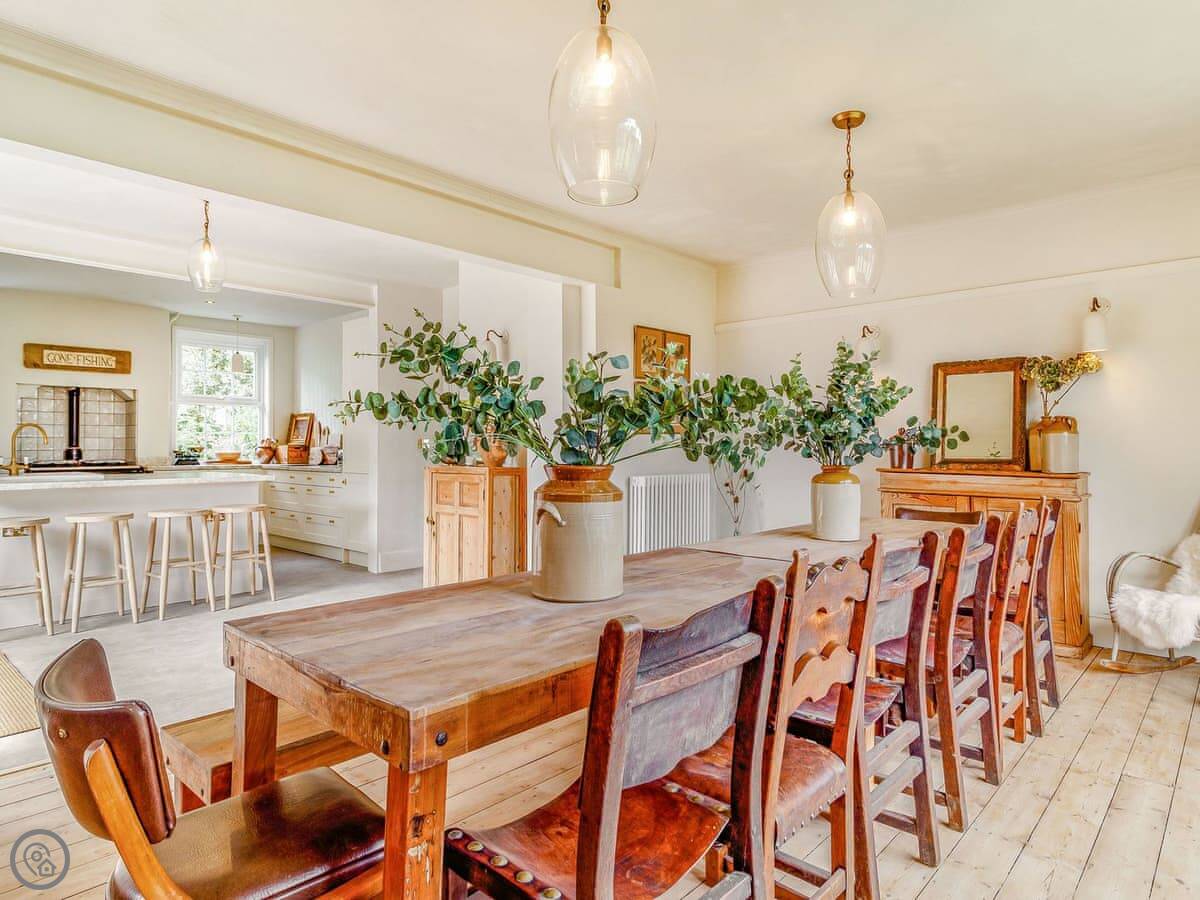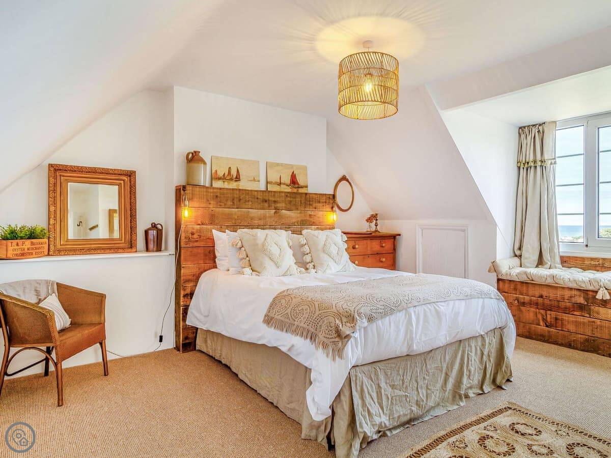 The main thing is the space. There's a big kitchen and dining area that everyone can fit in, a living room with sofas, and a separate TV snug. Useful if some people want to watch something different. You can see the sea from a lot of the windows, not right on the beach but a view over the rooftops.