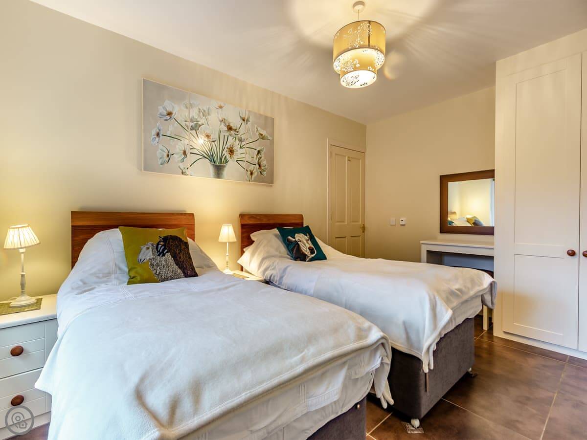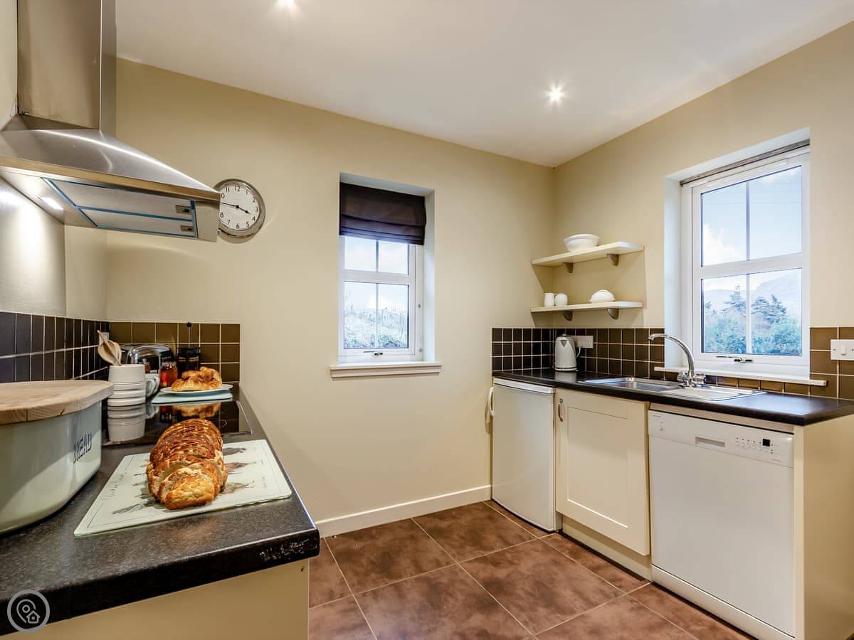 The cottage has underfloor heating and a wood burner, so it's always warm. The kitchen has a dishwasher and a washing machine. There's one bathroom, it's a wet room on the ground floor. The place has a 4 Star rating.