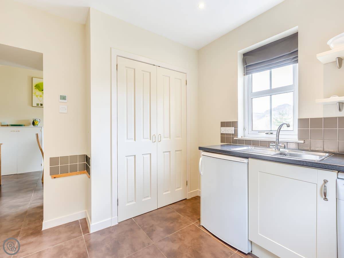The kitchen has what you'd need: dishwasher, washing machine, microwave. There's a separate dining room and then the sitting room. All the bedding and towels are here, and the Wi-Fi is included.