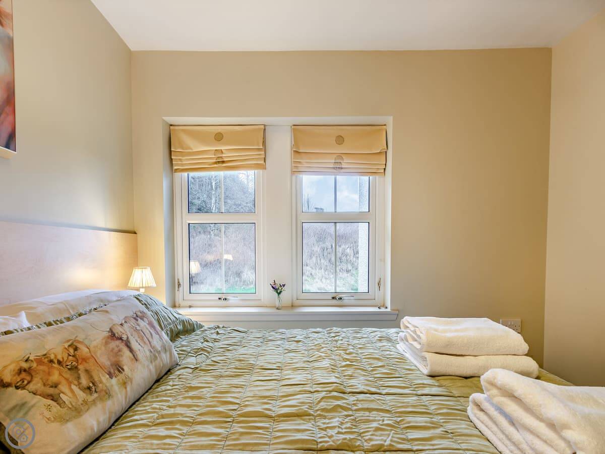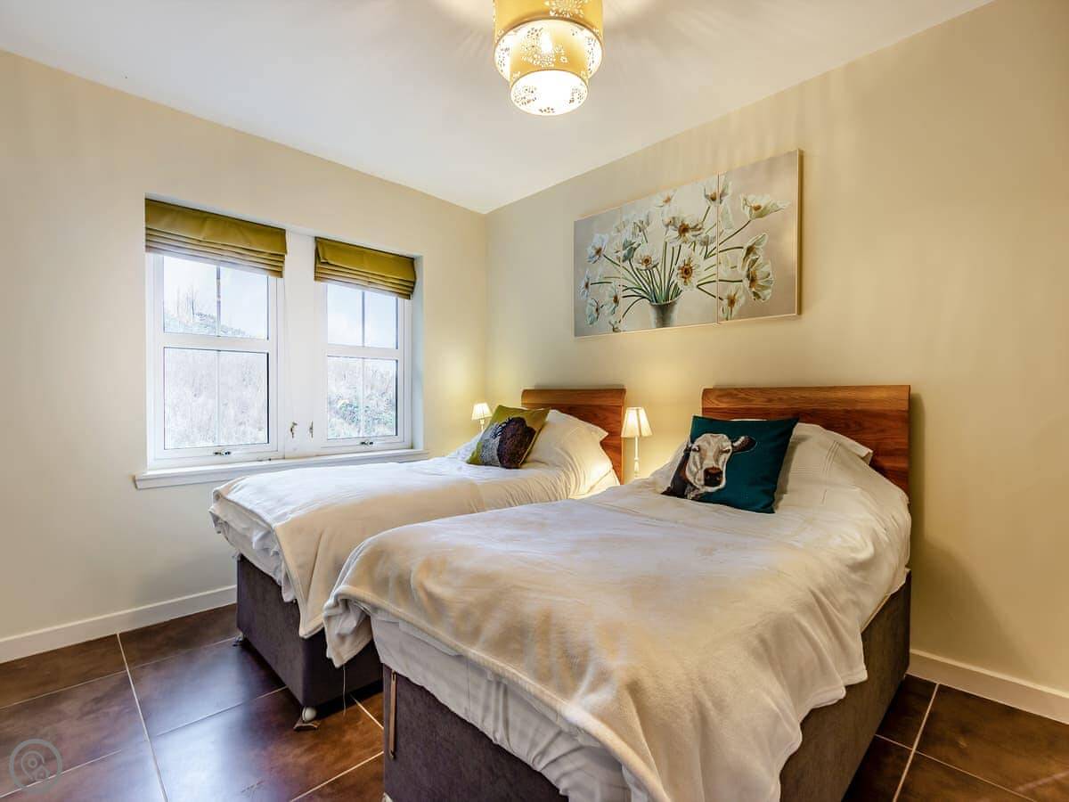 It's a two bedroom cottage, sleeps four. You can have it as two doubles or a double and two singles. There's one bathroom, it's a wet room. There's underfloor heating everywhere so it's always warm. The garden is enclosed, so it's private. It's quiet out there.