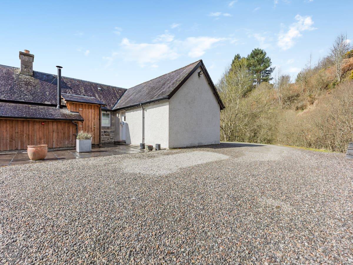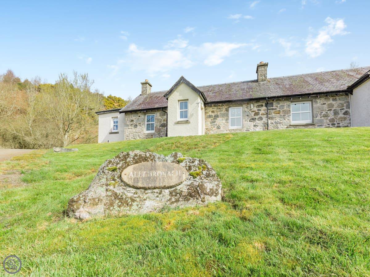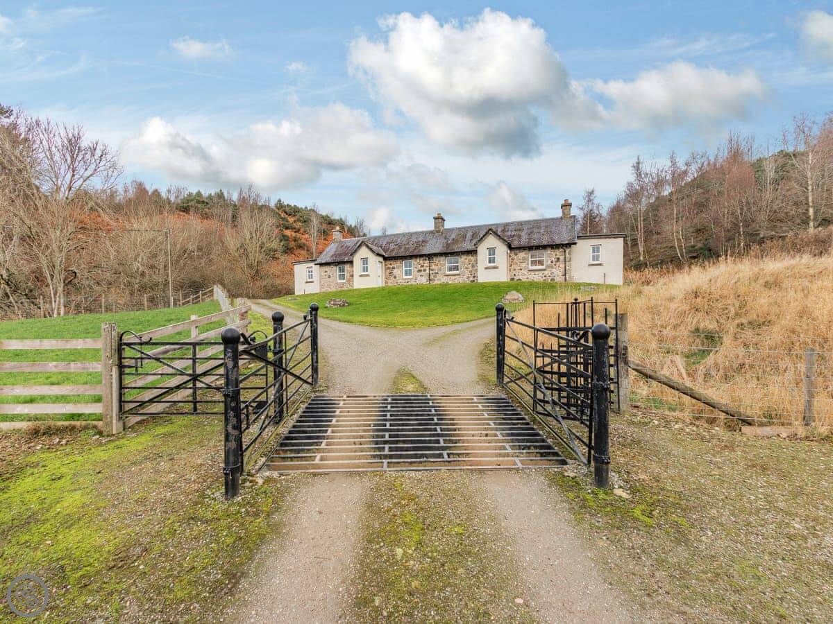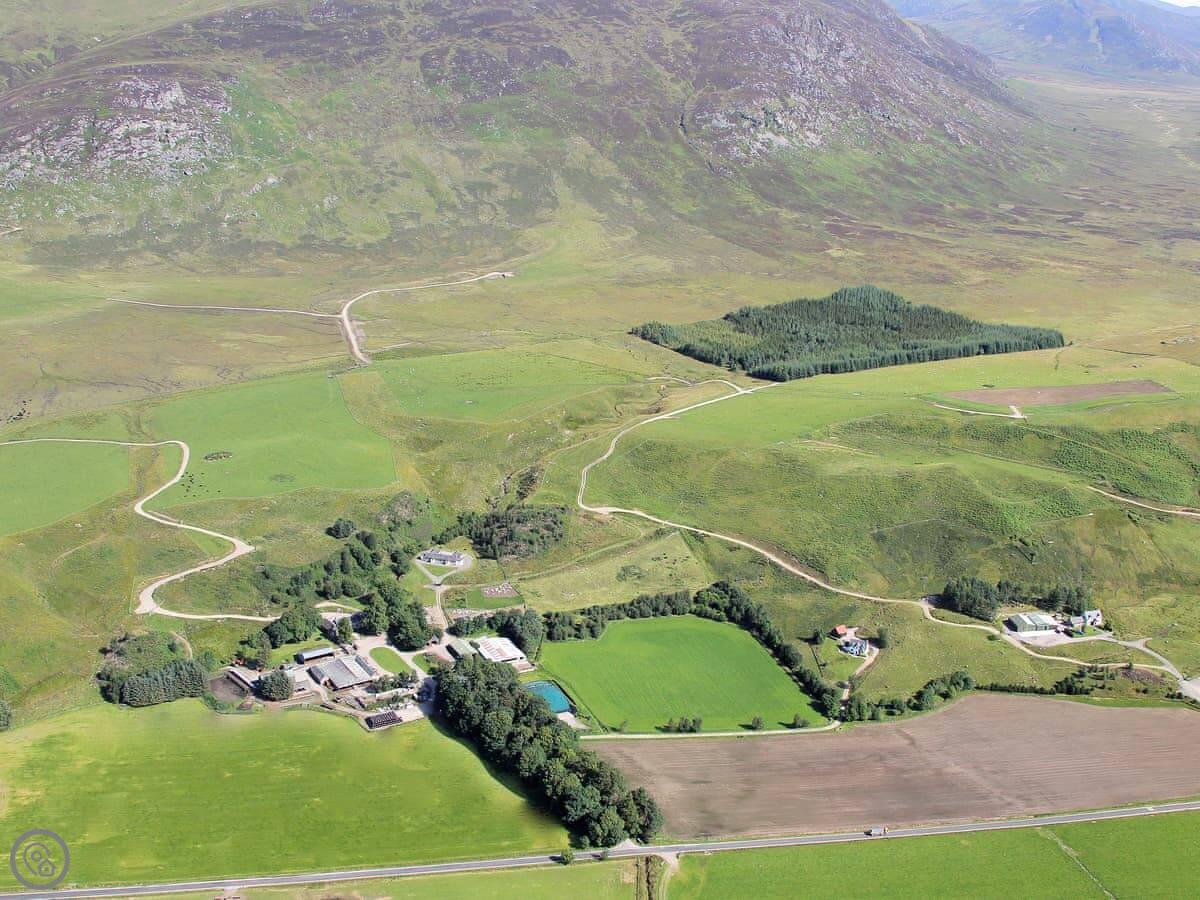 This place is Allt Bronach. It's in Balgowan, which is in the Cairngorms National Park, but right on the western edge. It looks out over Gaskbeg Farm and the valley.
